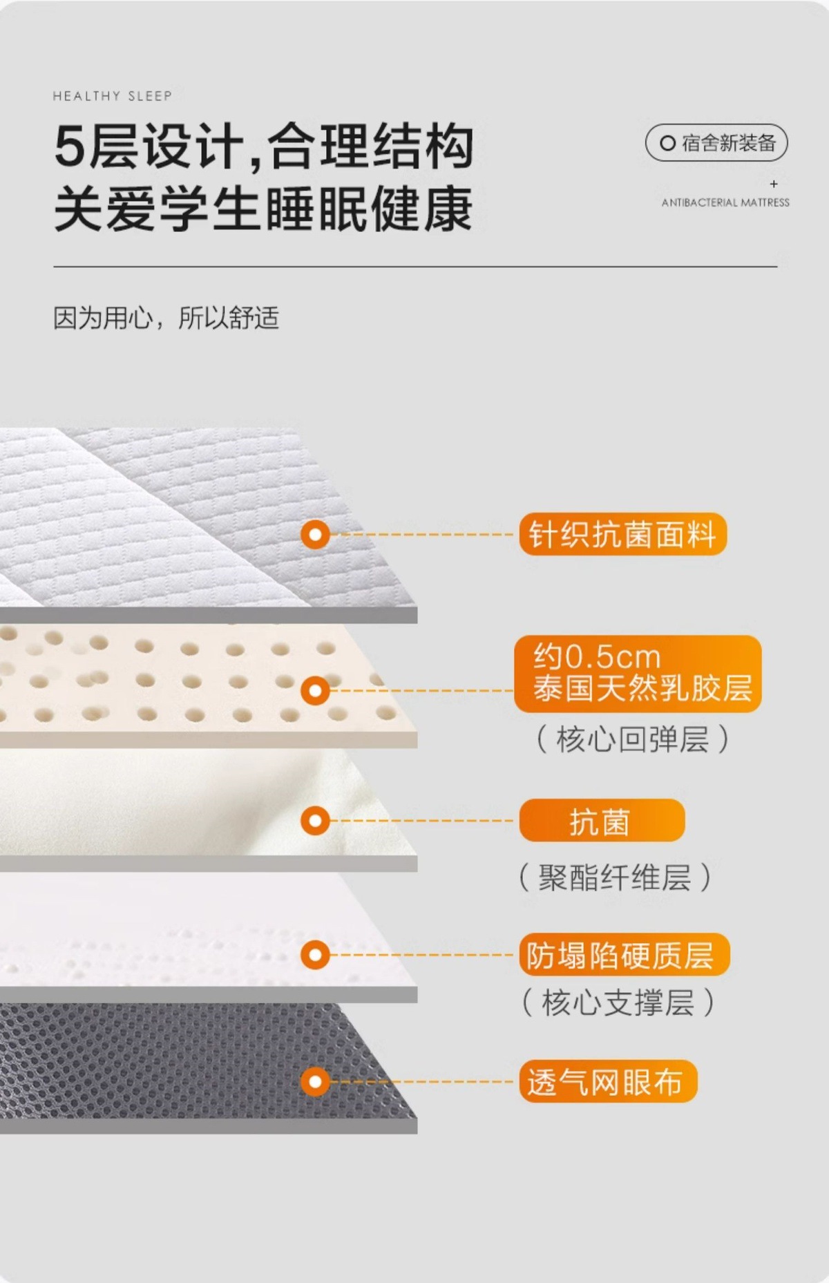 • 학생용 라텍스 매트리스 [약 5CM + 태국 라텍스] 슈웨 그레이