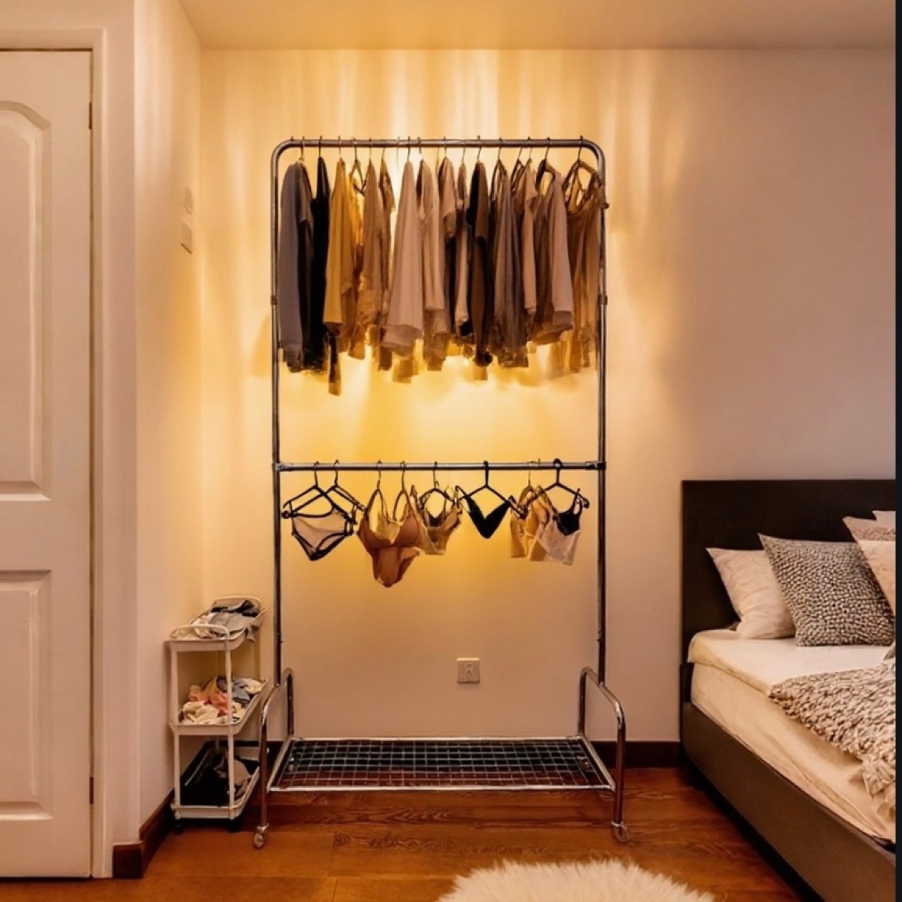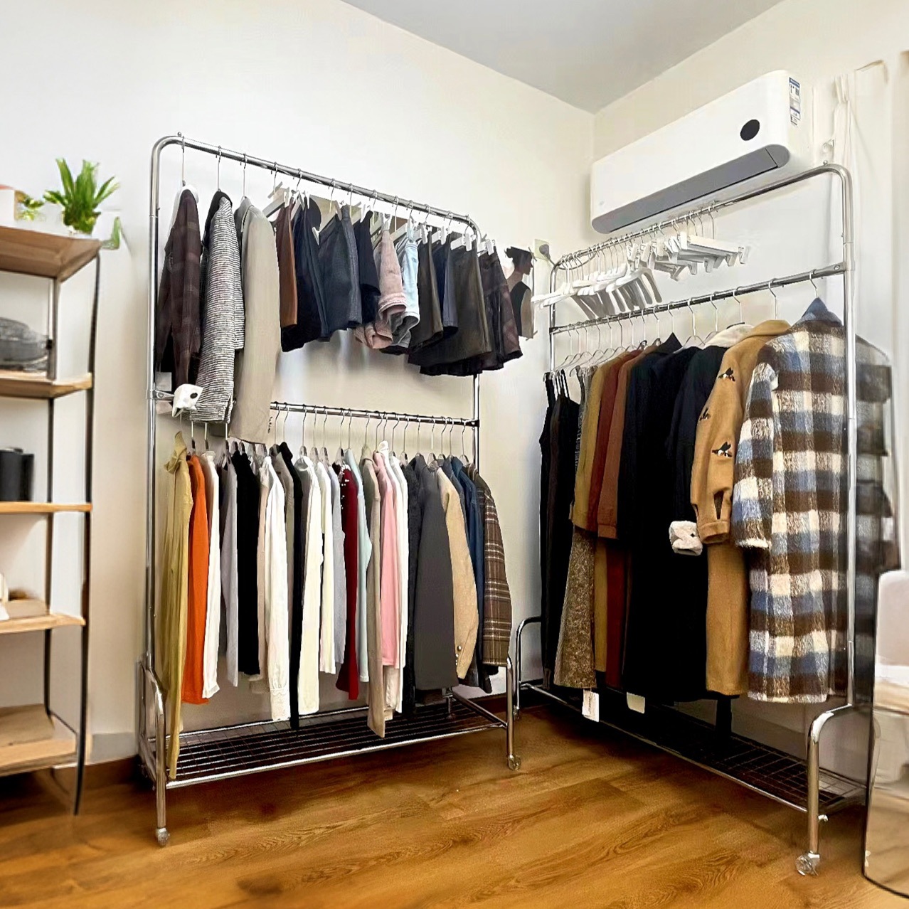높이 200 바퀴가 달린 이동식 이중 레이어 옷걸이, 코트 랙, 이중 막대 탄소강 바닥 스토리지 옷걸이스토어 가기