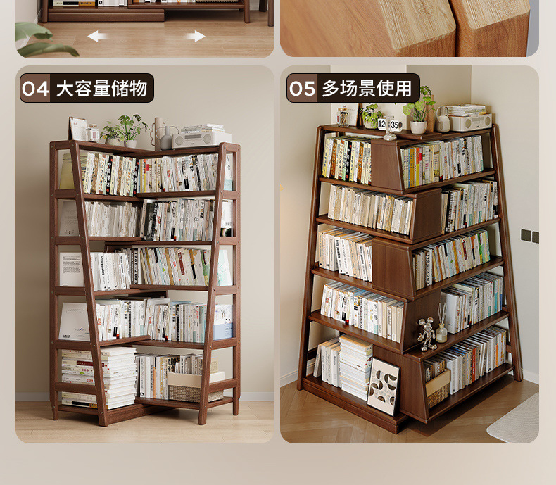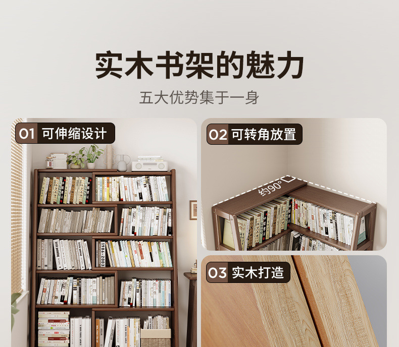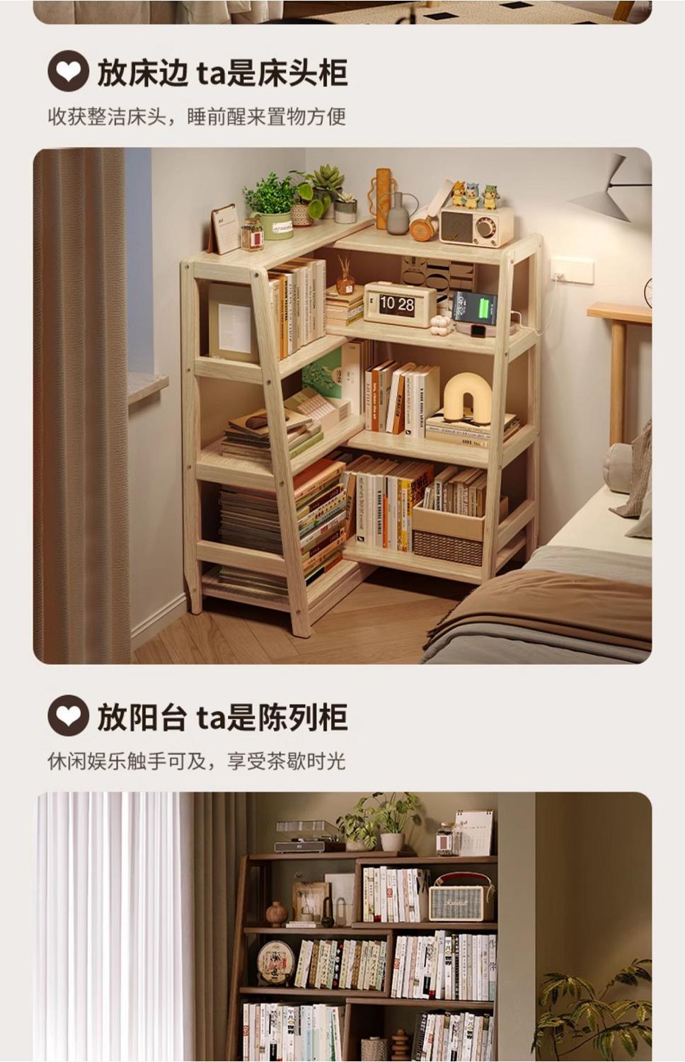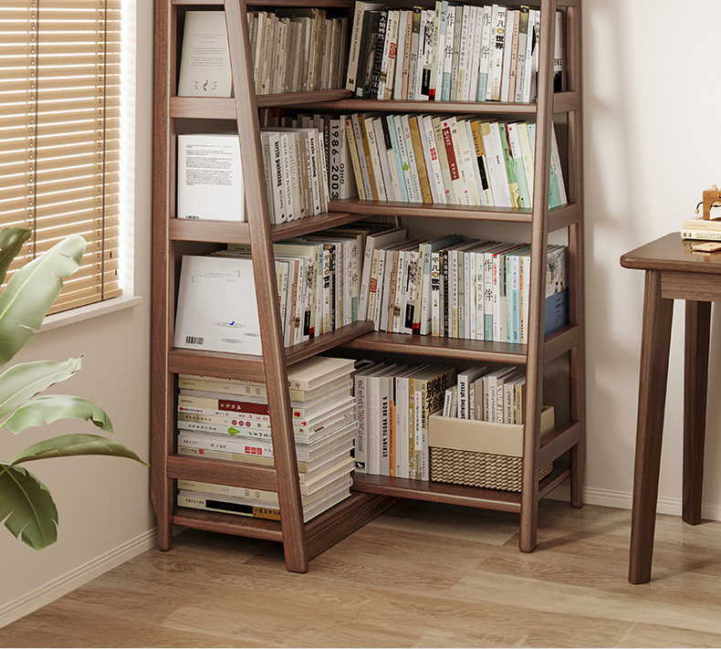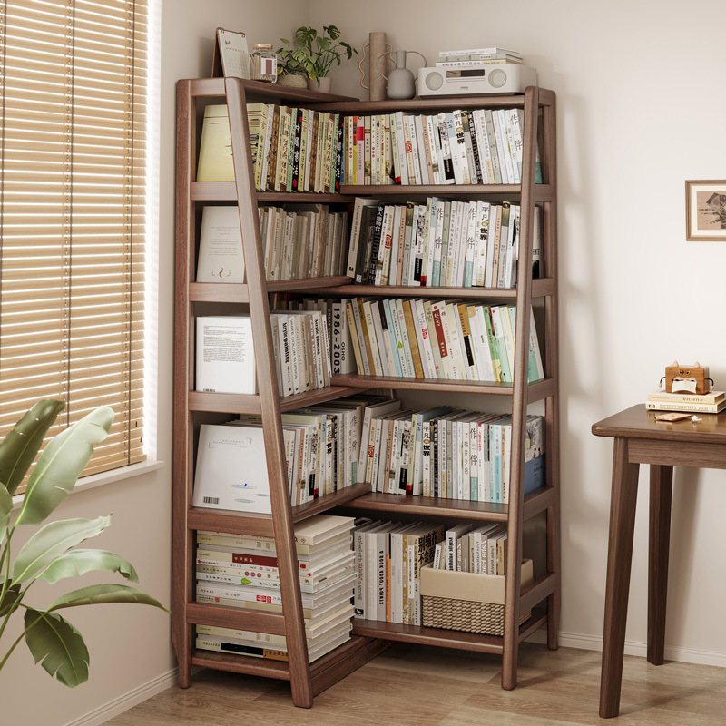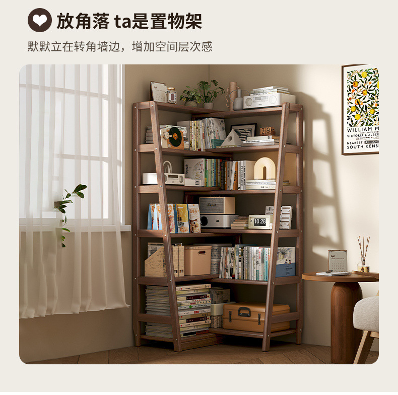 단단한 나무 선반 책장 통합 벽걸이형 가정용 수납 선반 바닥 침실 개폐식 코너 책장 수납 선반스토어 가기