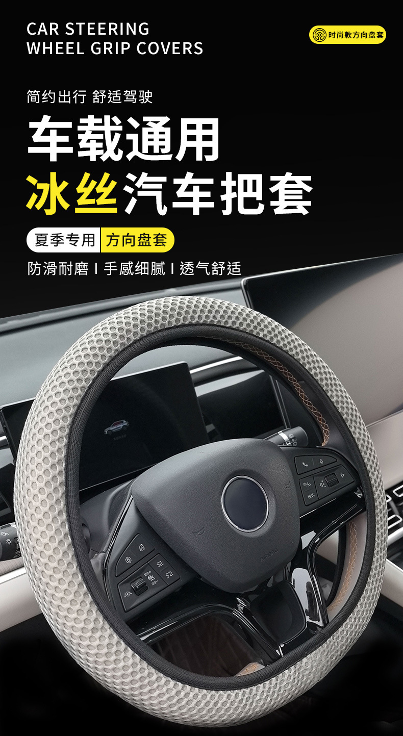국경 간 새로운 스티어링 휠 커버 3D 마사지 메쉬 얼음 실크 핸들 커버 미끄럼 방지 내부 링 없음 자동차 핸들 커버 탄성 모델 Xiyin스토어 가기