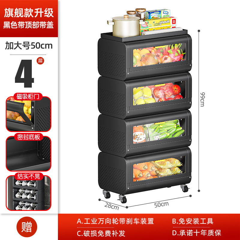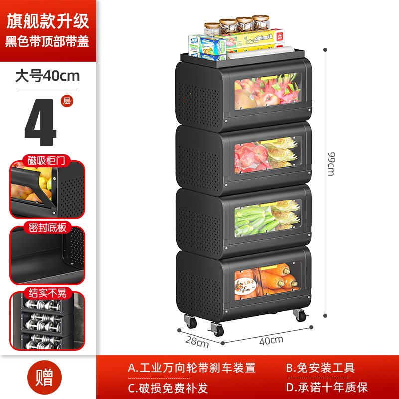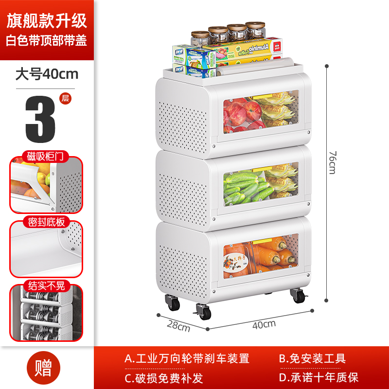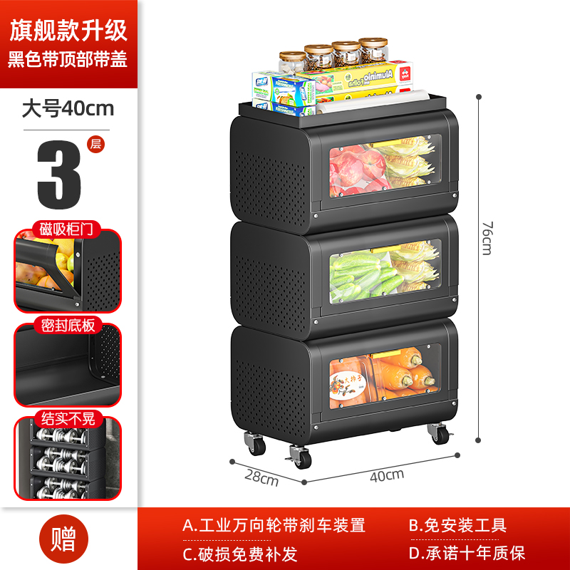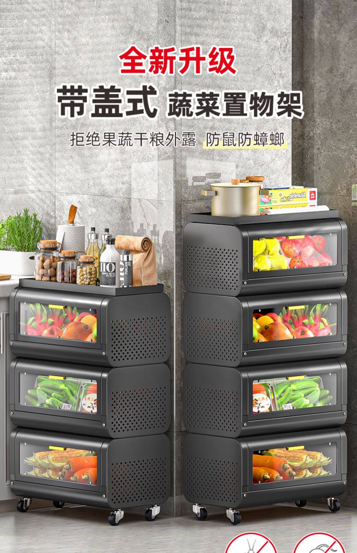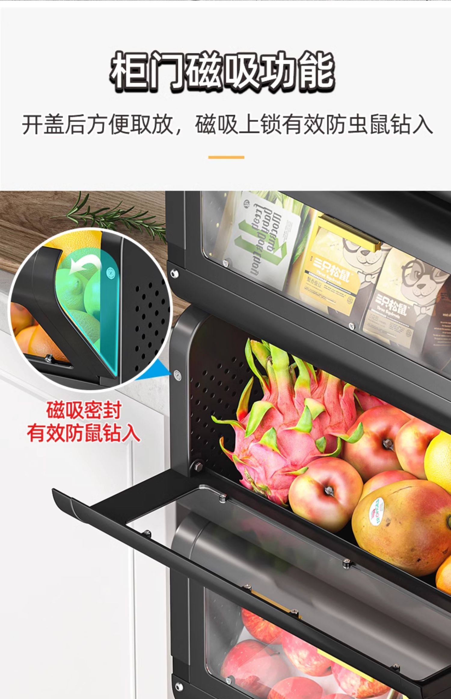 문이 있는 쥐 방지 주방 야채 바구니 보관함 바닥에 놓인 다층 과일 및 야채 보관 바구니 트롤리 보관 캐비닛스토어 가기
