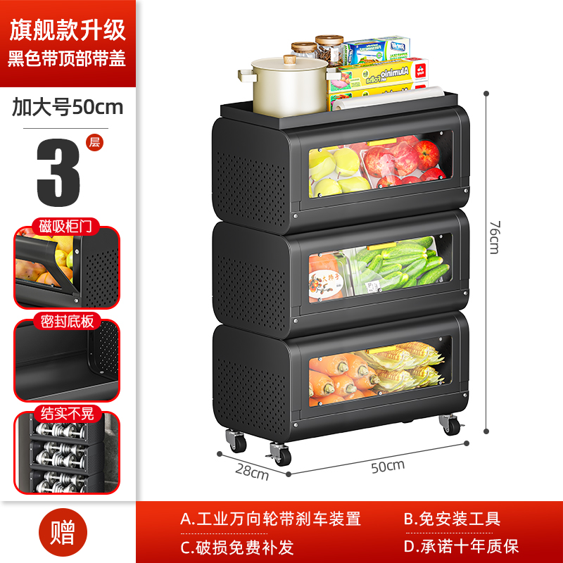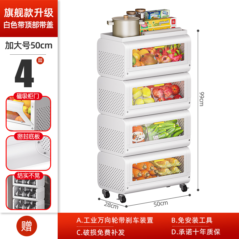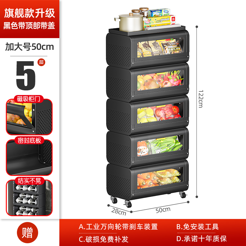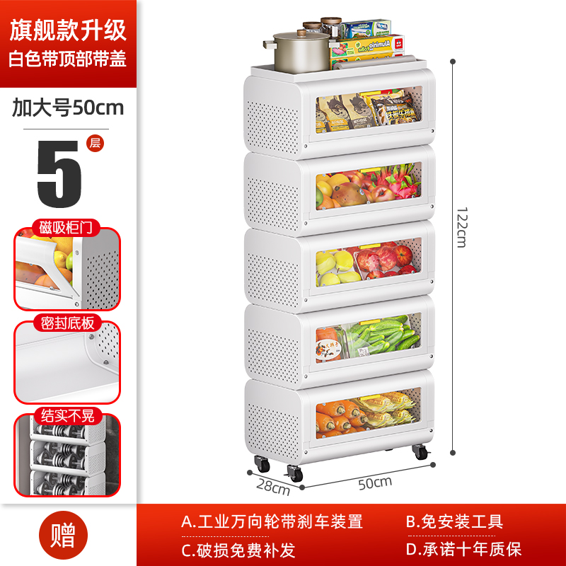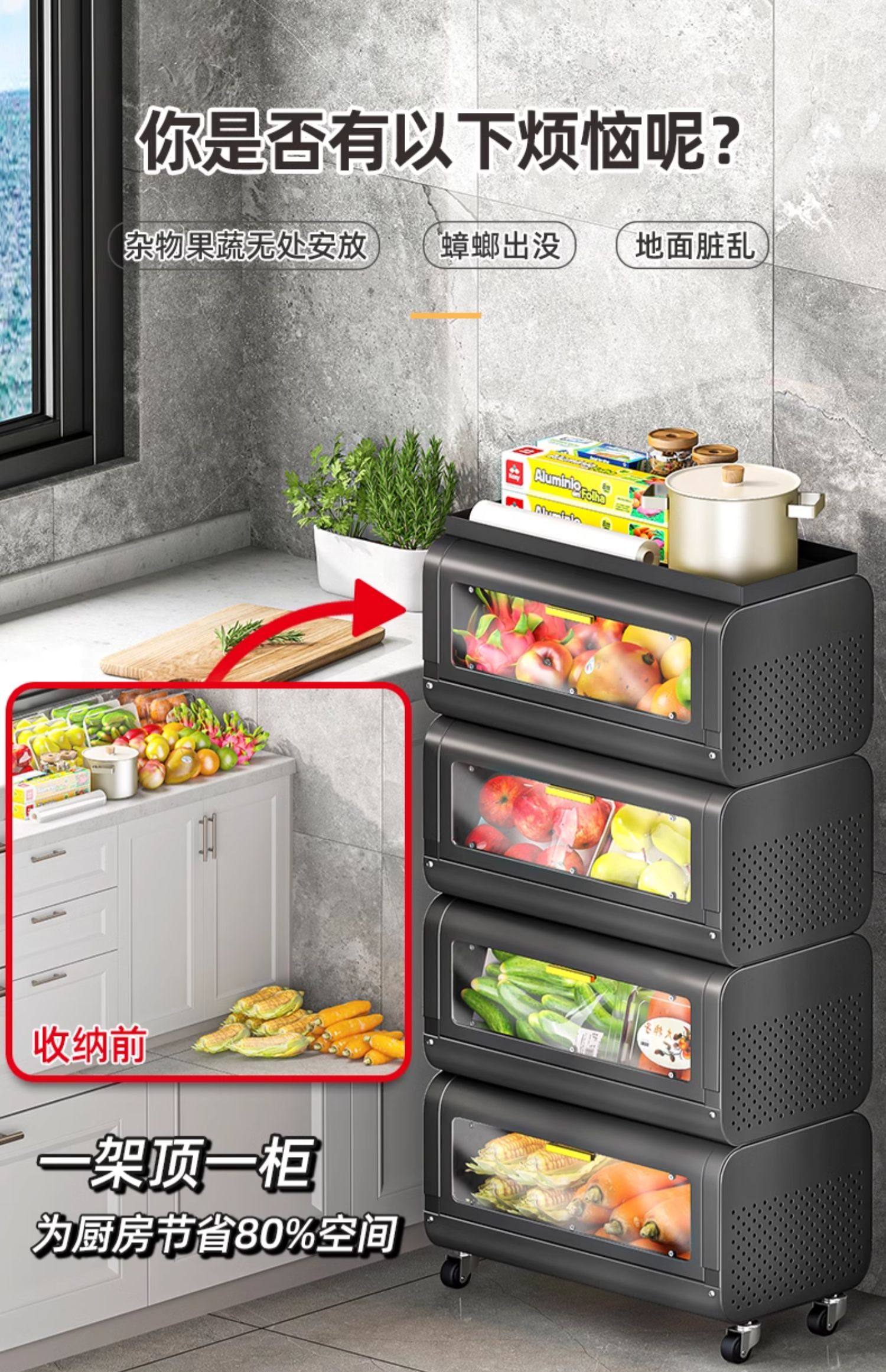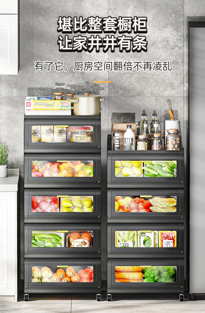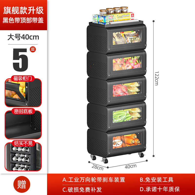 문이 있는 쥐 방지 주방 야채 바구니 보관함 바닥에 놓인 다층 과일 및 야채 보관 바구니 트롤리 보관 캐비닛스토어 가기
