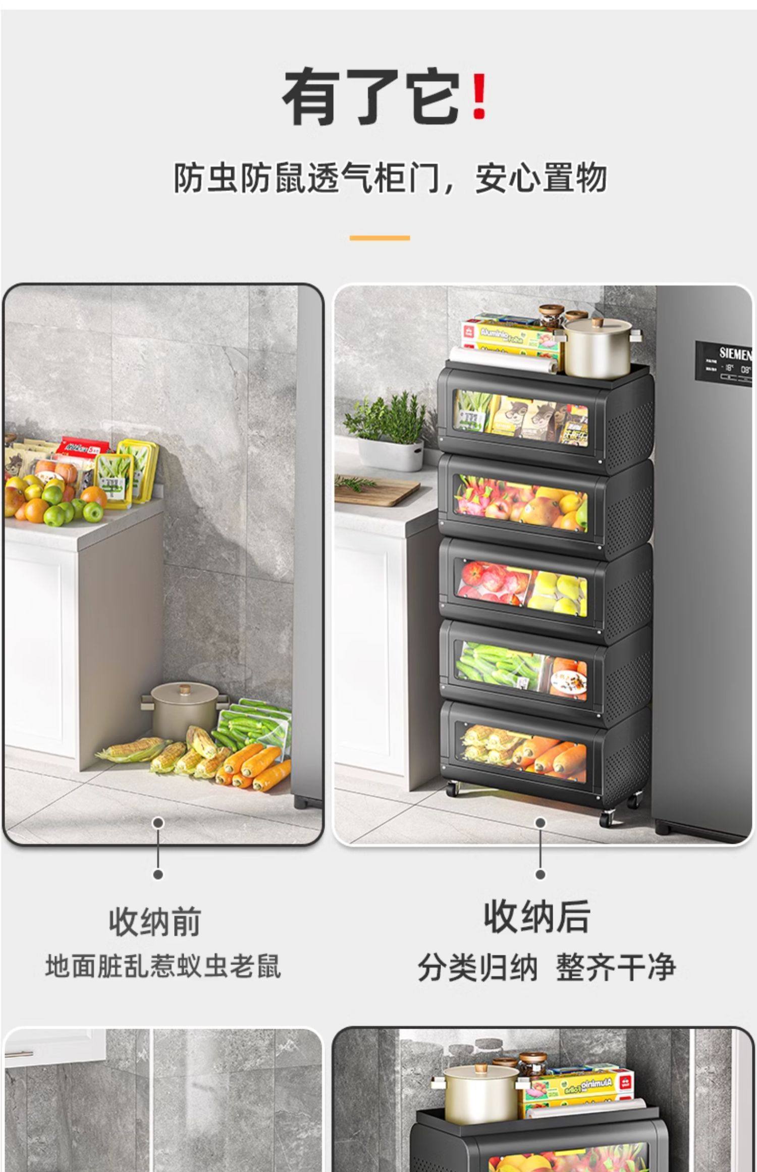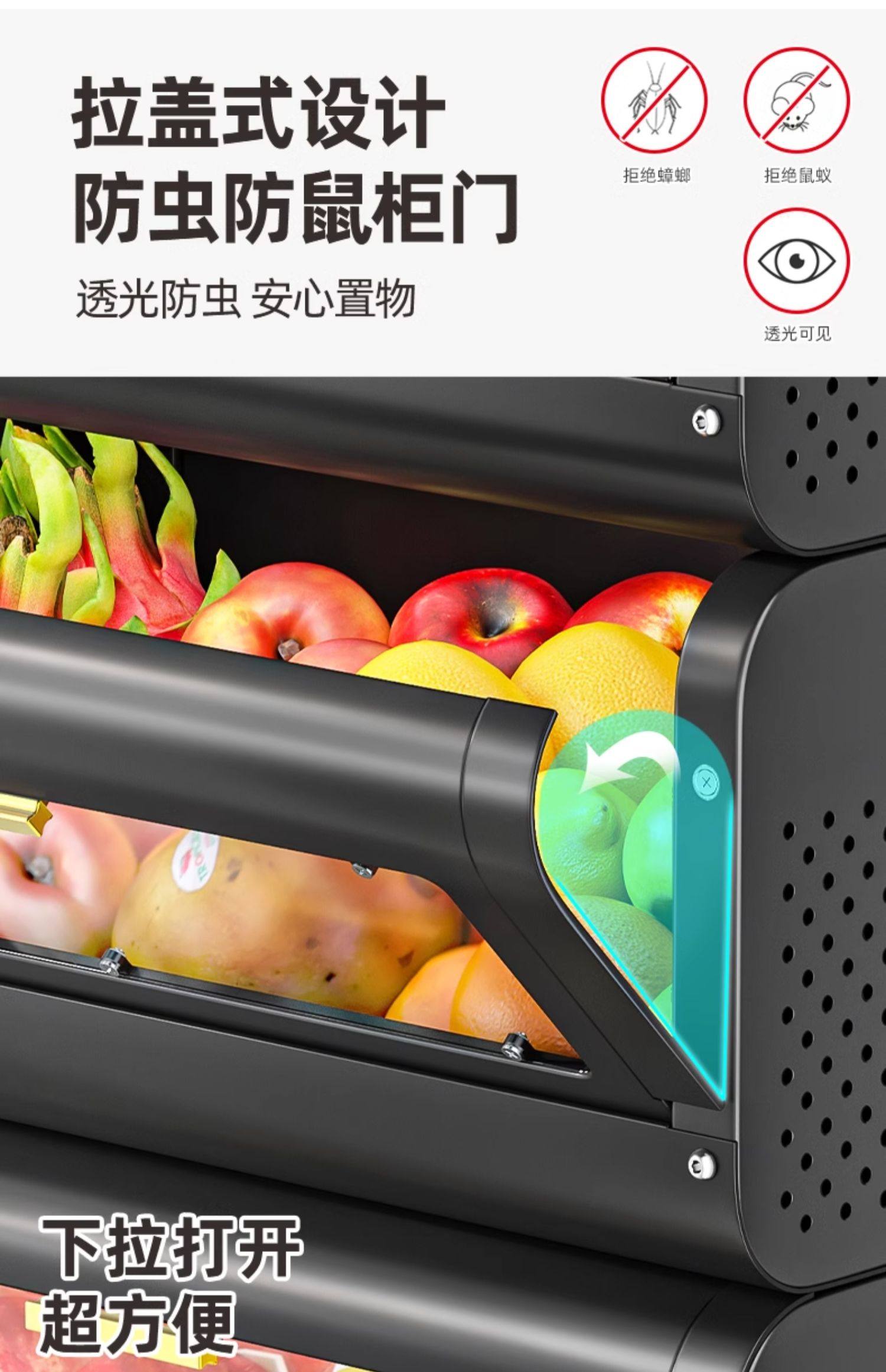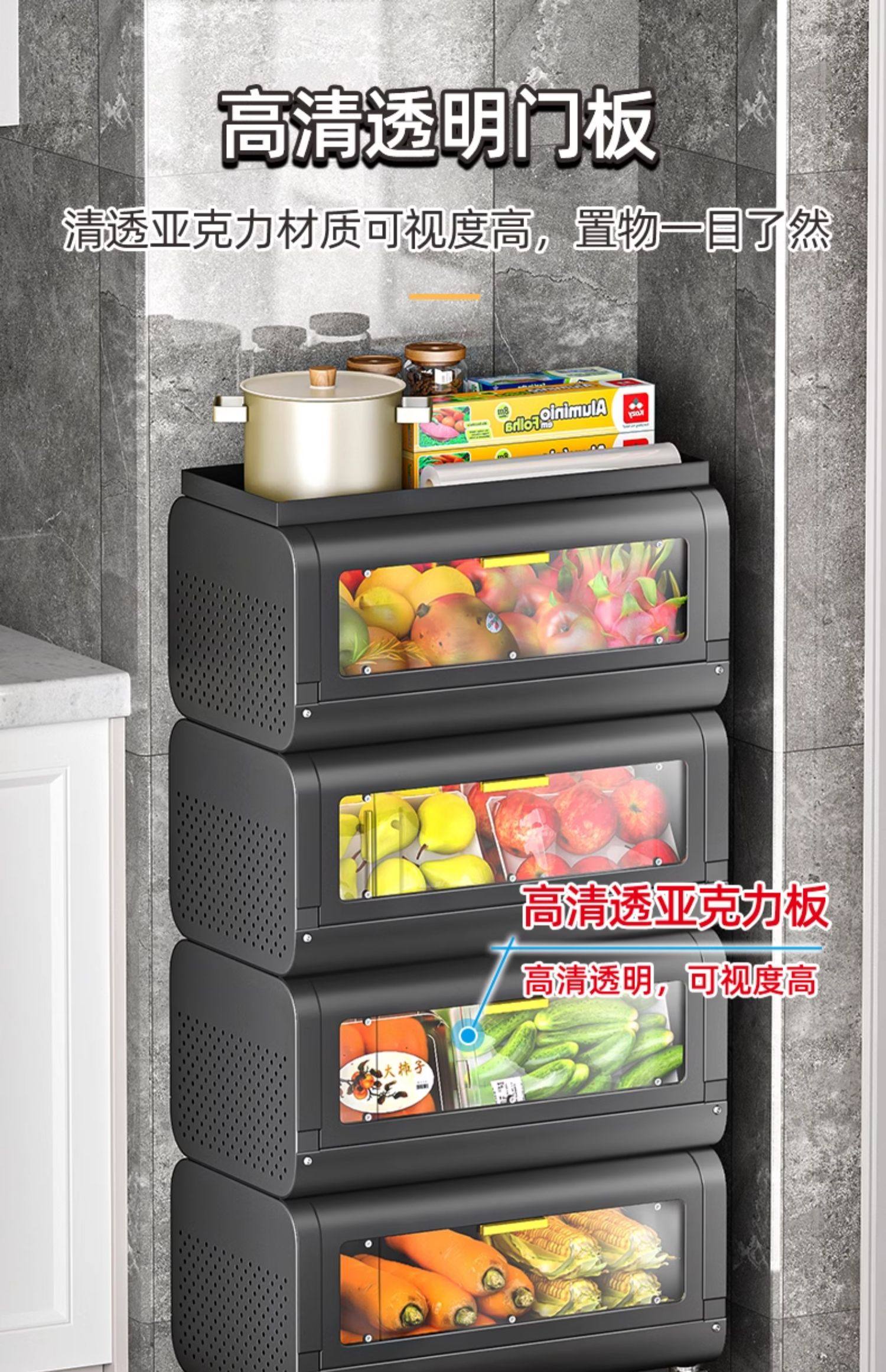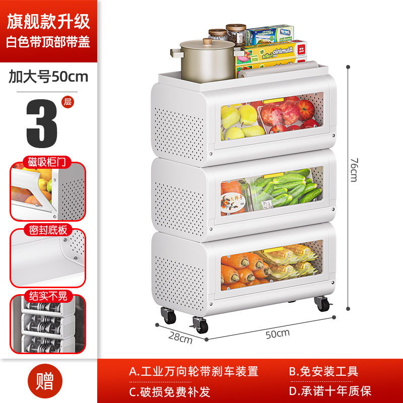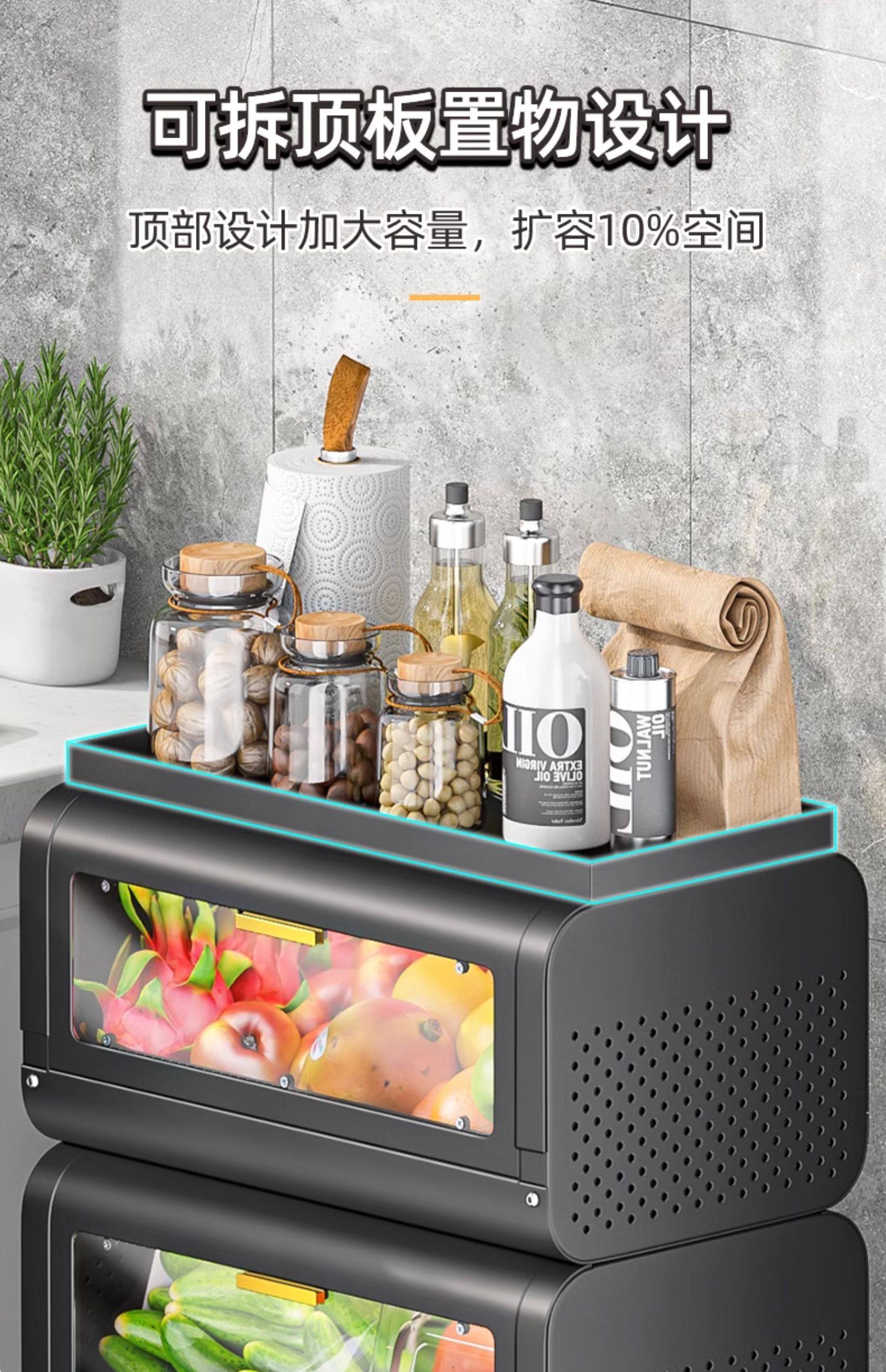 문이 있는 쥐 방지 주방 야채 바구니 보관함 바닥에 놓인 다층 과일 및 야채 보관 바구니 트롤리 보관 캐비닛스토어 가기