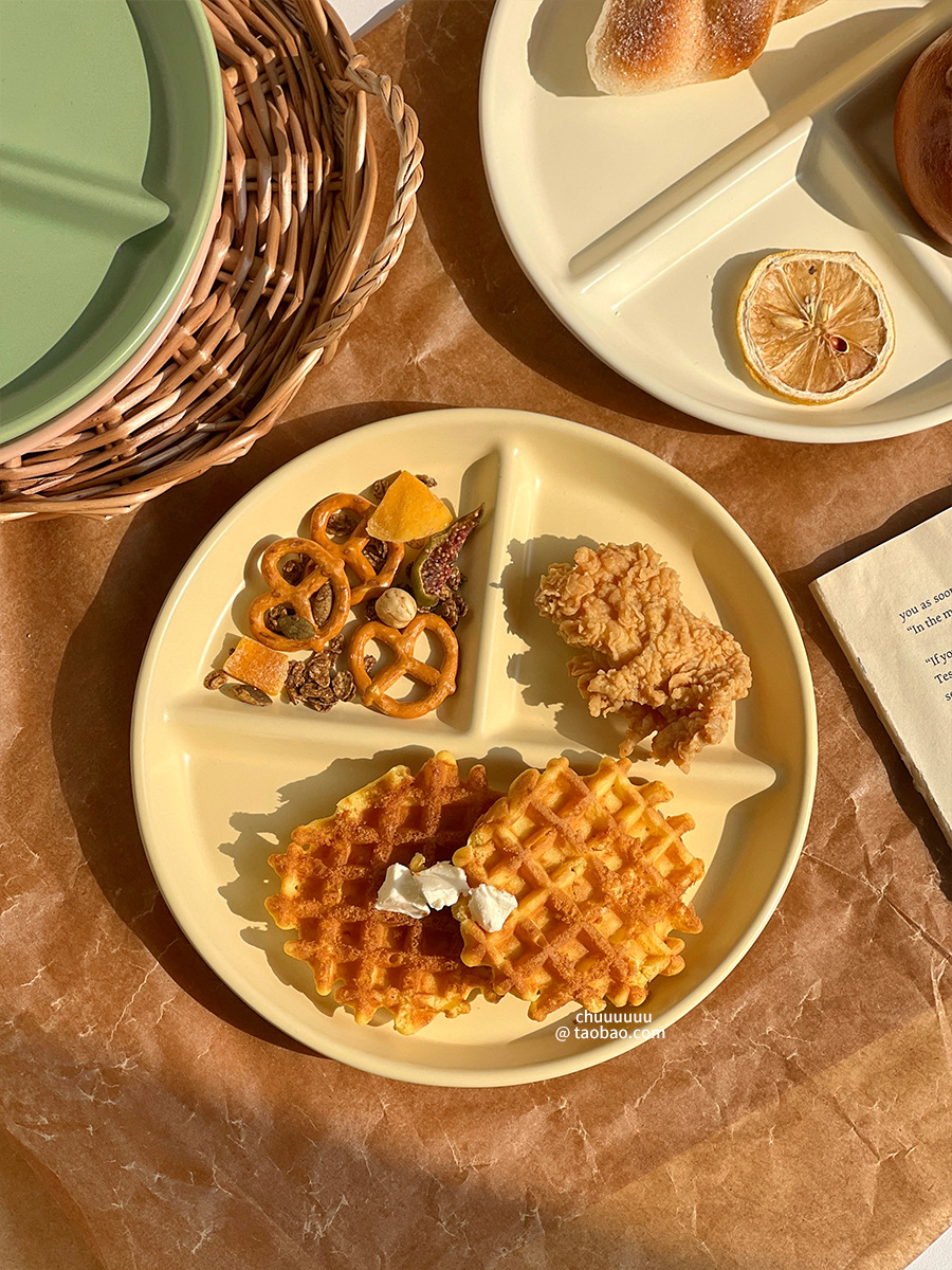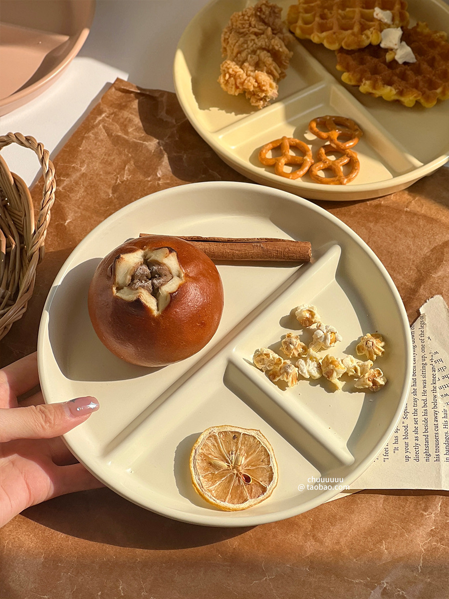 211 지방 감량 디너 플레이트, 원형 플레이트, 아침 식사 3칸 세라믹 디너 플레이트, 성인 및 어린이를 위한 체중 감량 과일 플레이트