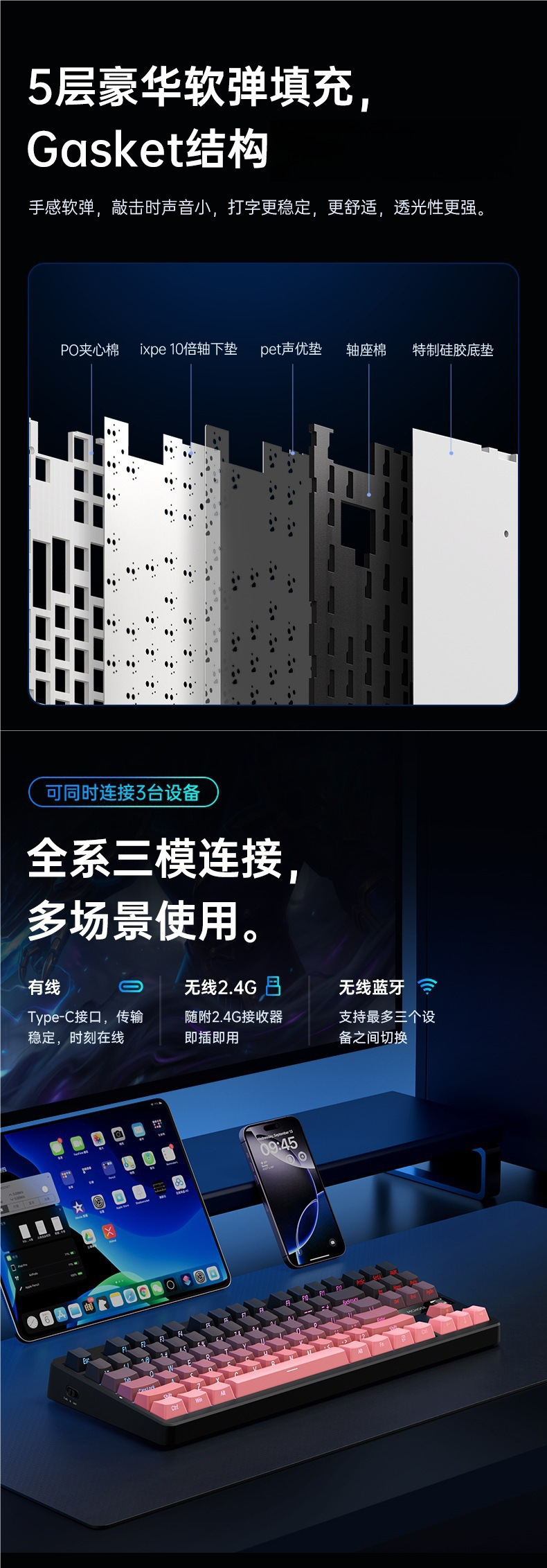 MCHOSE G87 맞춤형 기계식 키보드 가스켓 구조 무선 3모드 e스포츠 게임 사무실스토어 가기