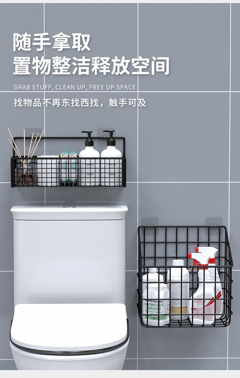 욕실 수납 선반, 욕실 화장실 세면대, 펀치 없는 수납, 벽걸이형 변기 위 수납 선반