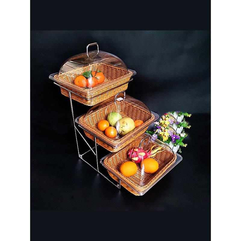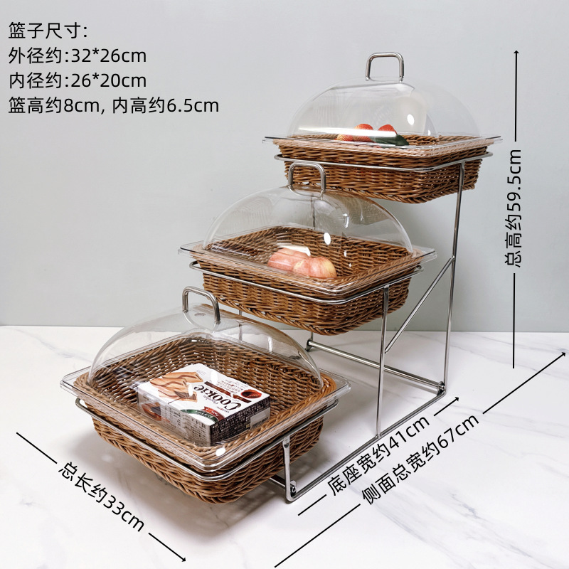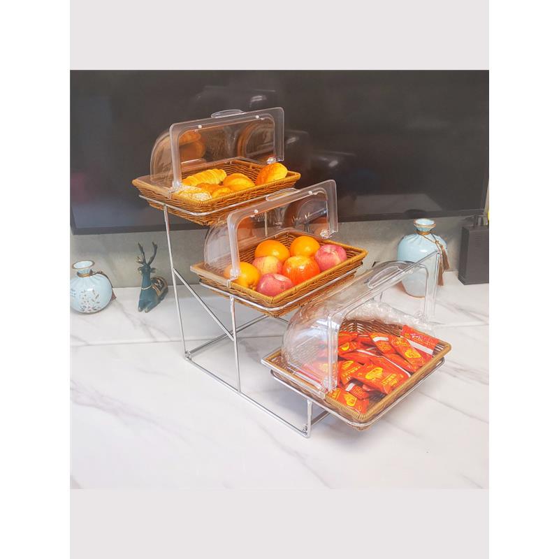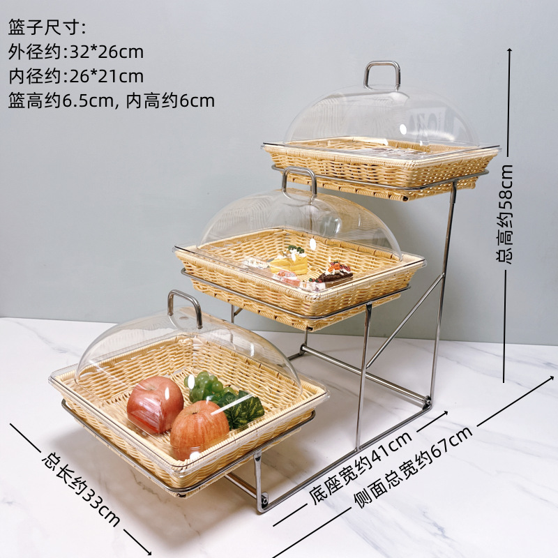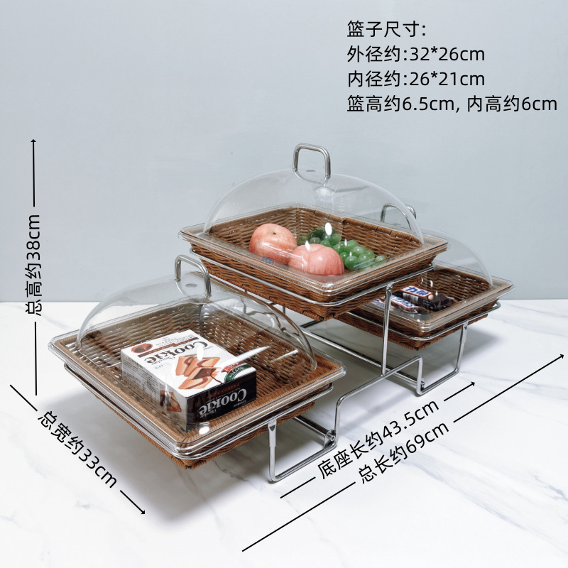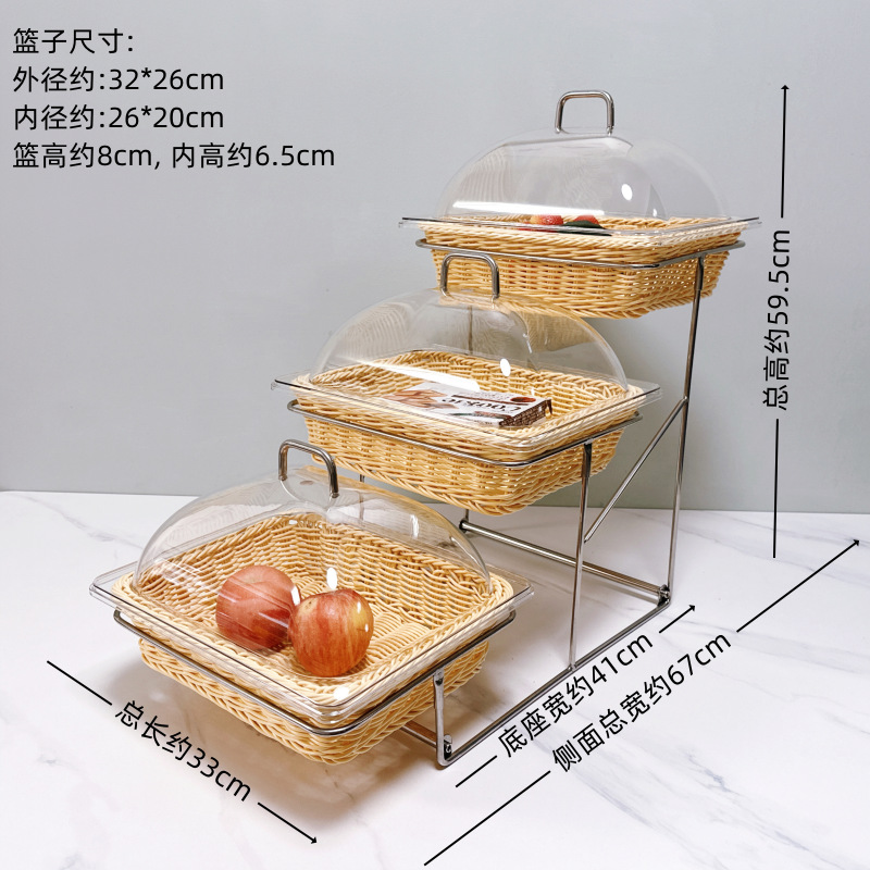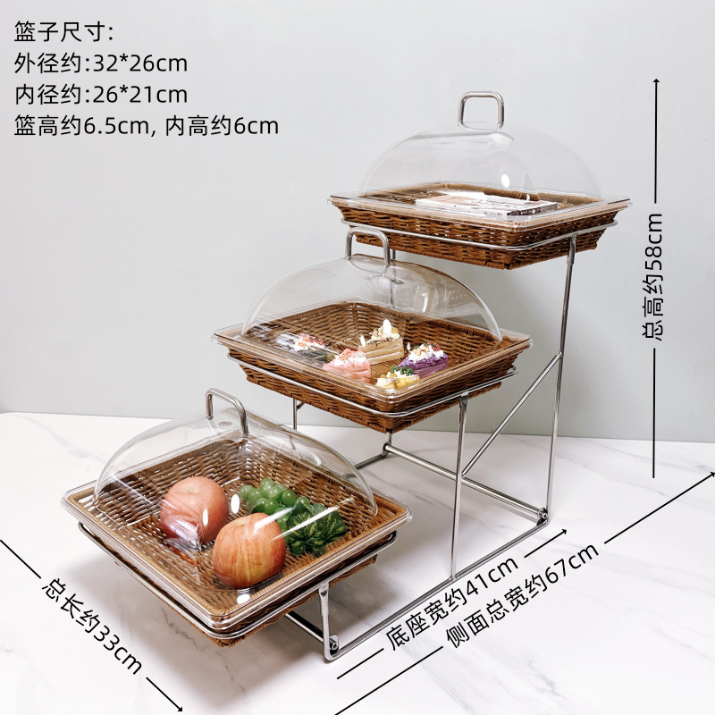 호텔 패션 크리 에이 티브 3 층 빵 스낵 과일 바구니 뚜껑 뷔페 과일 접시 다층 음식 디스플레이 스탠드