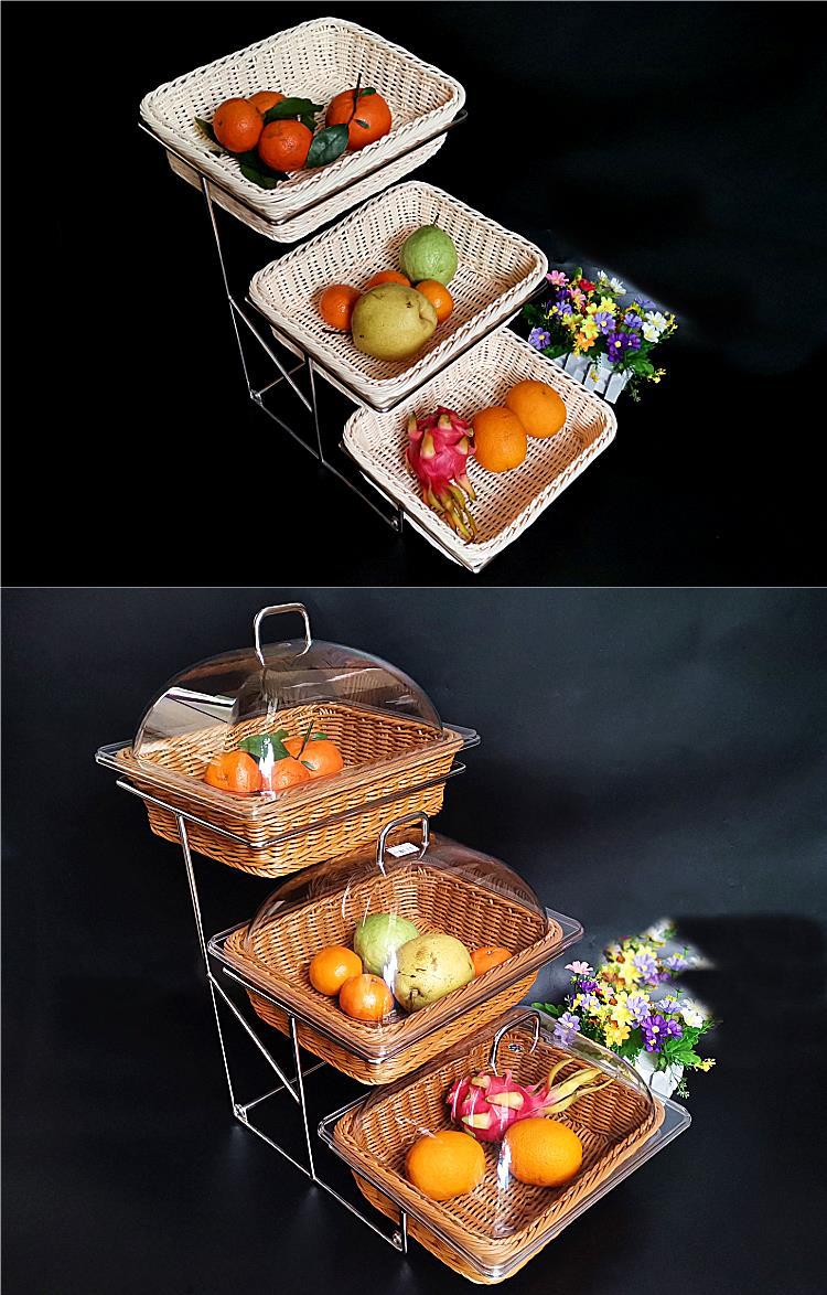 호텔 패션 크리 에이 티브 3 층 빵 스낵 과일 바구니 뚜껑 뷔페 과일 접시 다층 음식 디스플레이 스탠드스토어 가기