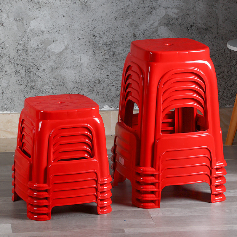 플라스틱 의자, 의자, 가정용 높은 의자, 사각형 의자, 도매 빨간색 두꺼운 플라스틱 스택