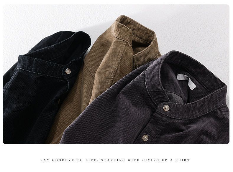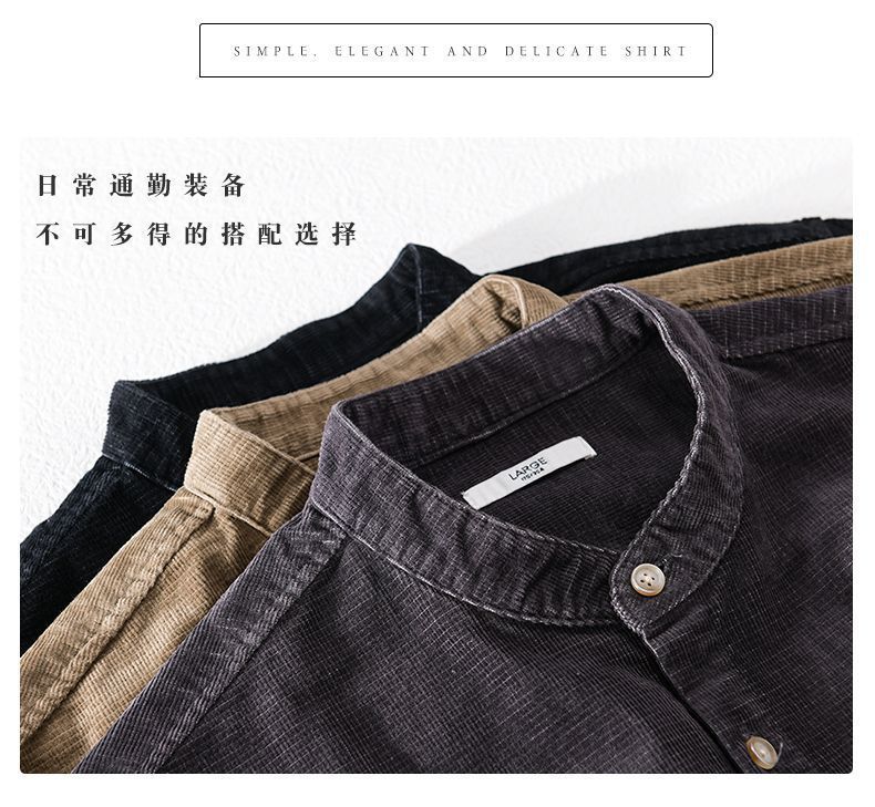 느슨한 봄, 가을 새로운 셔츠 재킷 남성 스탠드 칼라 캐주얼 코듀로이 긴팔 셔츠 일본 복고풍스토어 가기