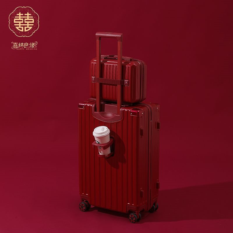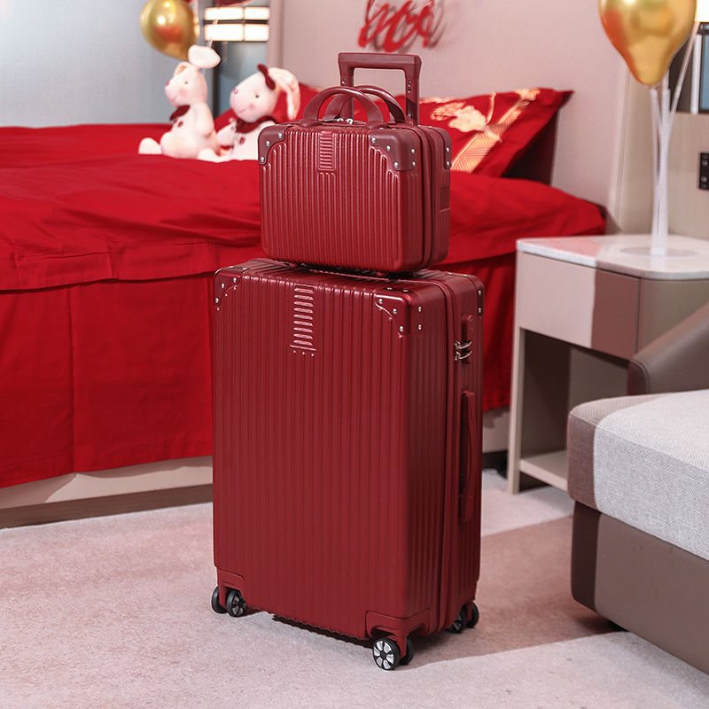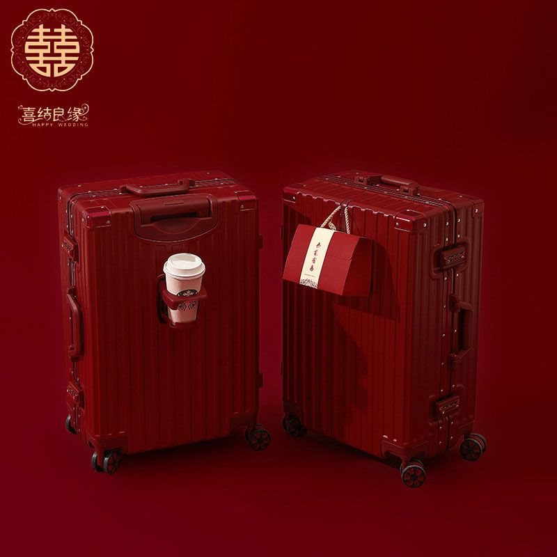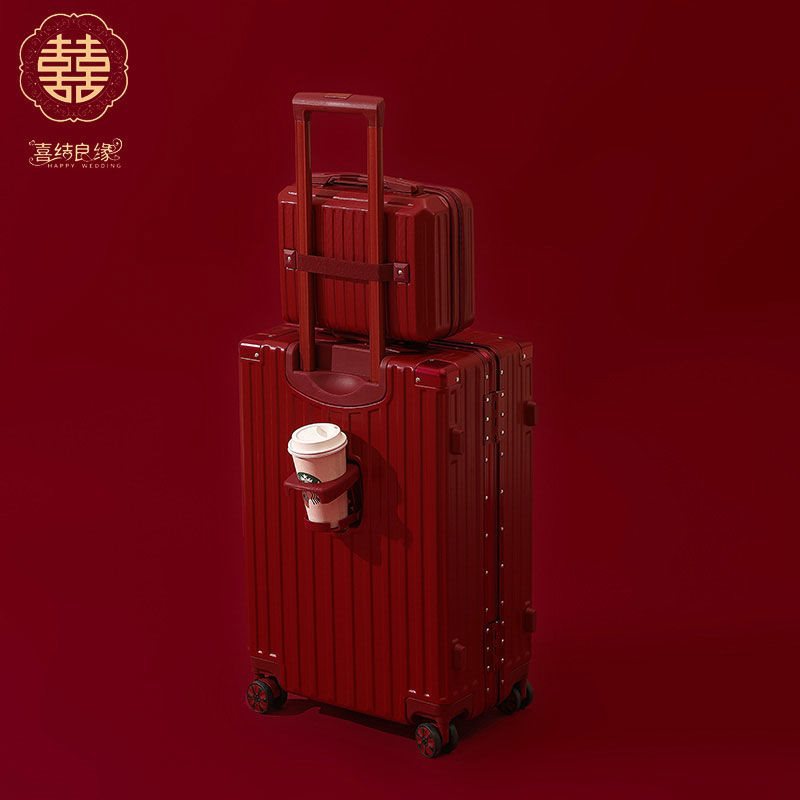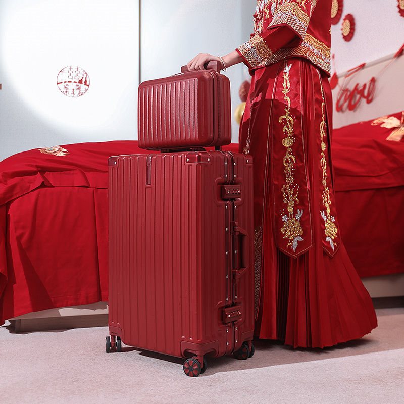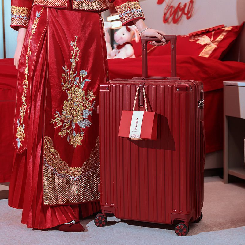 웨딩 트렁크, 버건디 컬러의 결혼식 트렁크, 신부 결혼식 트렁크, 결혼식 트롤리 케이스, 복고풍 웨딩 트렁크