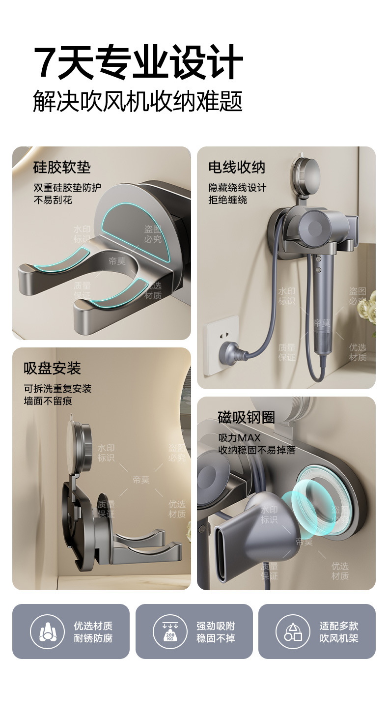 욕실에 구멍을 뚫을 필요 없는 흡입컵형 헤어드라이어 수납선반 브래킷, 욕실 벽걸이형 헤어드라이어 수납스토어 가기