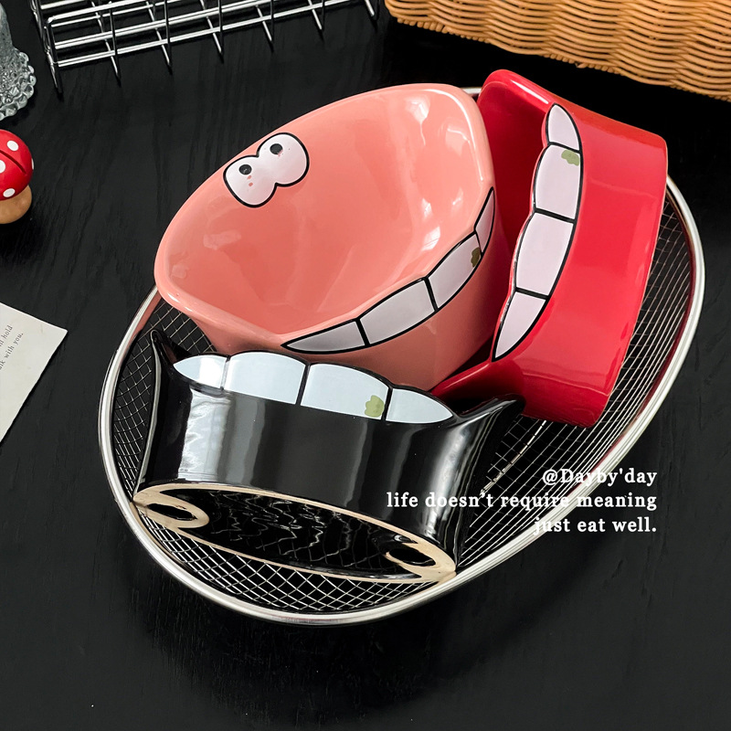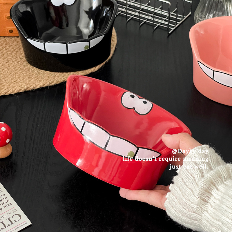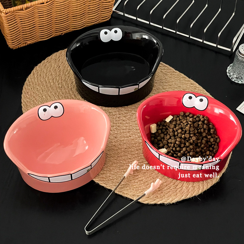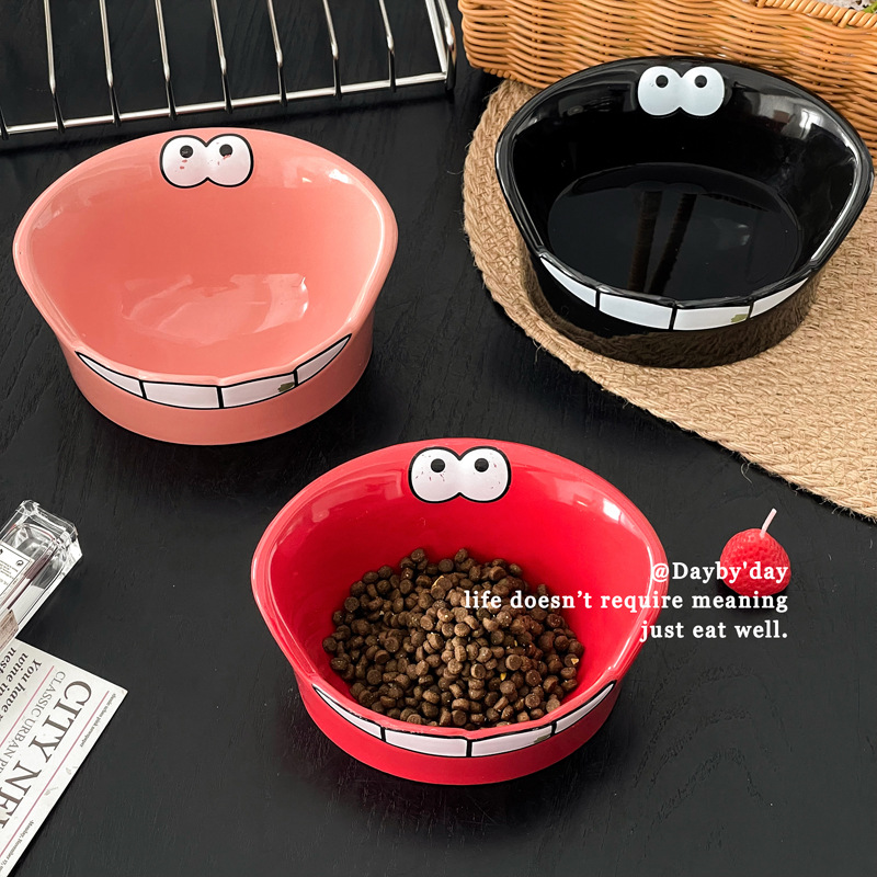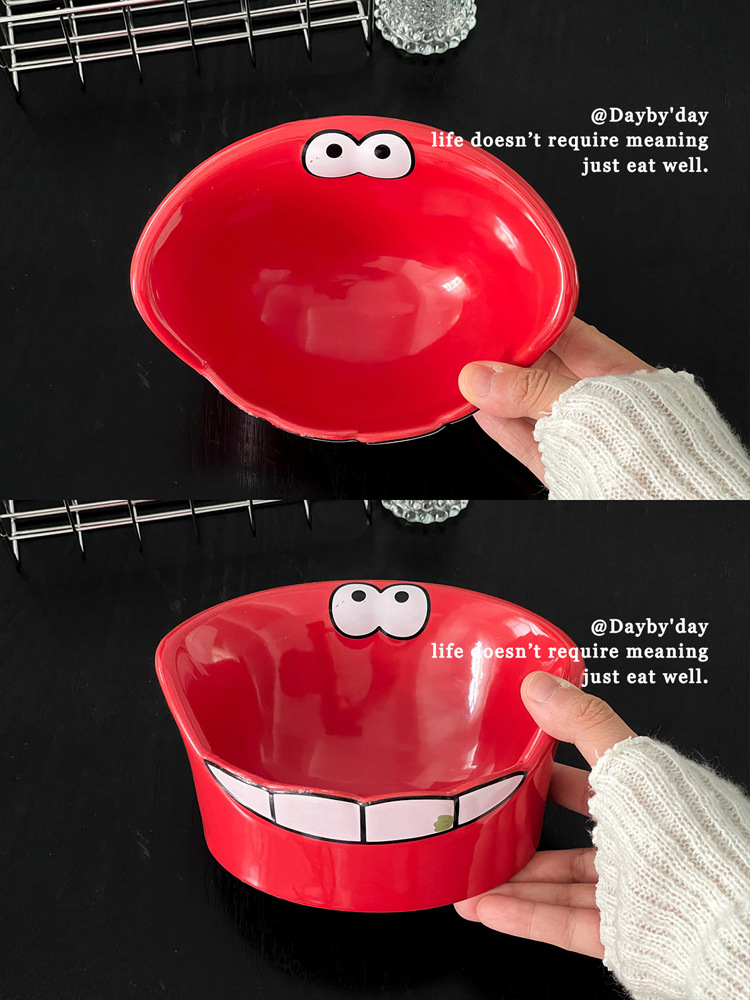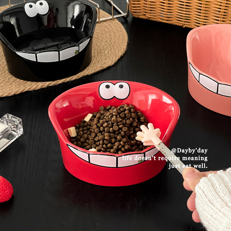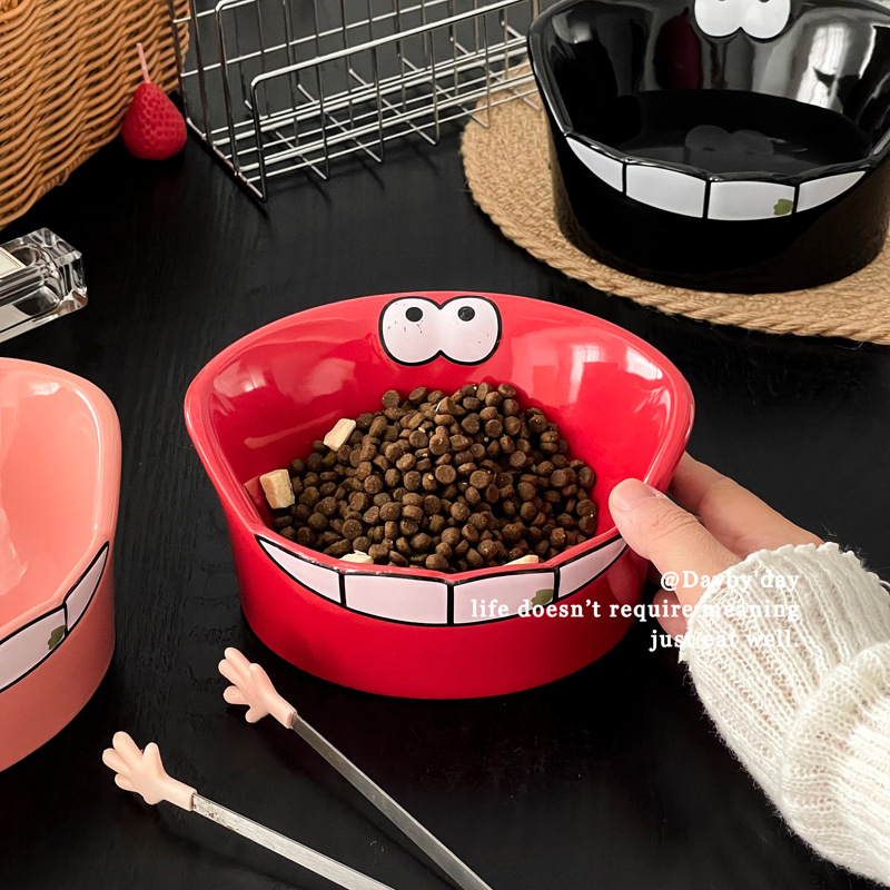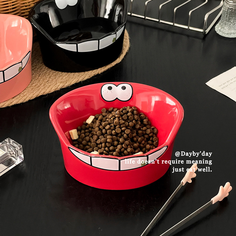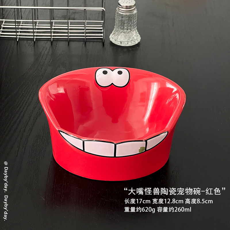 • 큰 입 괴물 세라믹 애완 동물 그릇-레드