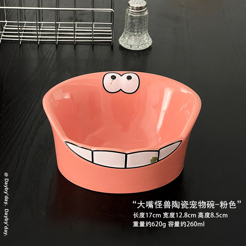 • 큰 입 몬스터 세라믹 애완 동물 그릇 - 핑크
