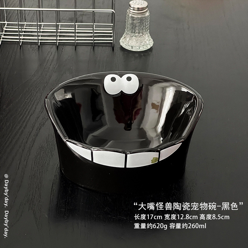 • 큰 입 괴물 세라믹 애완 동물 그릇-블랙