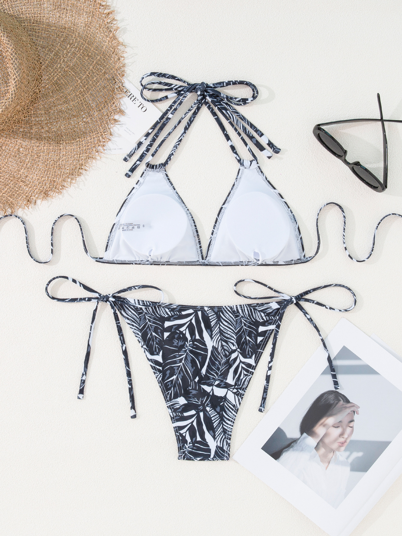 유럽과 미국 여성용 신상 수영복 섹시한 하드컵 프린트 비키니 세트 끈 없는 등 노출 슬림핏 단색