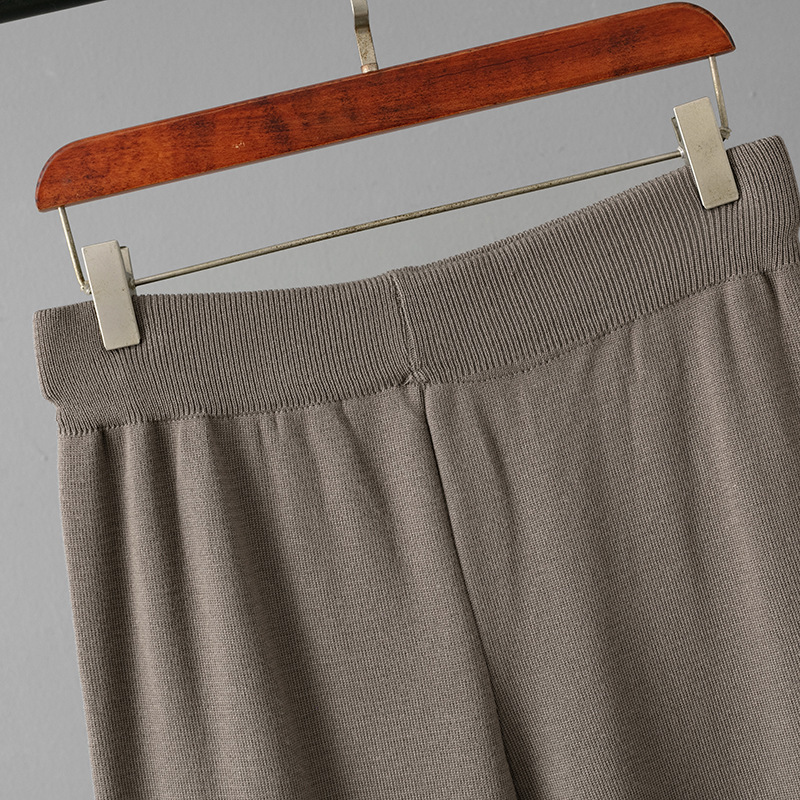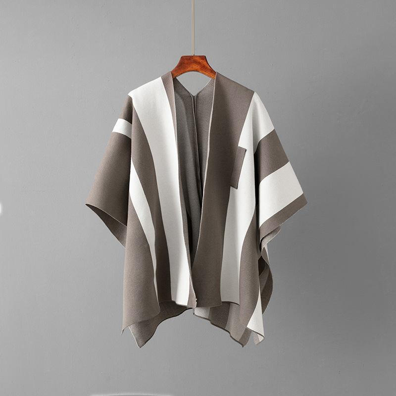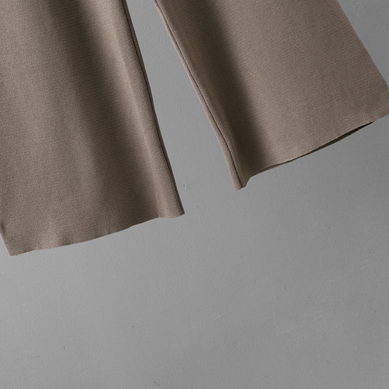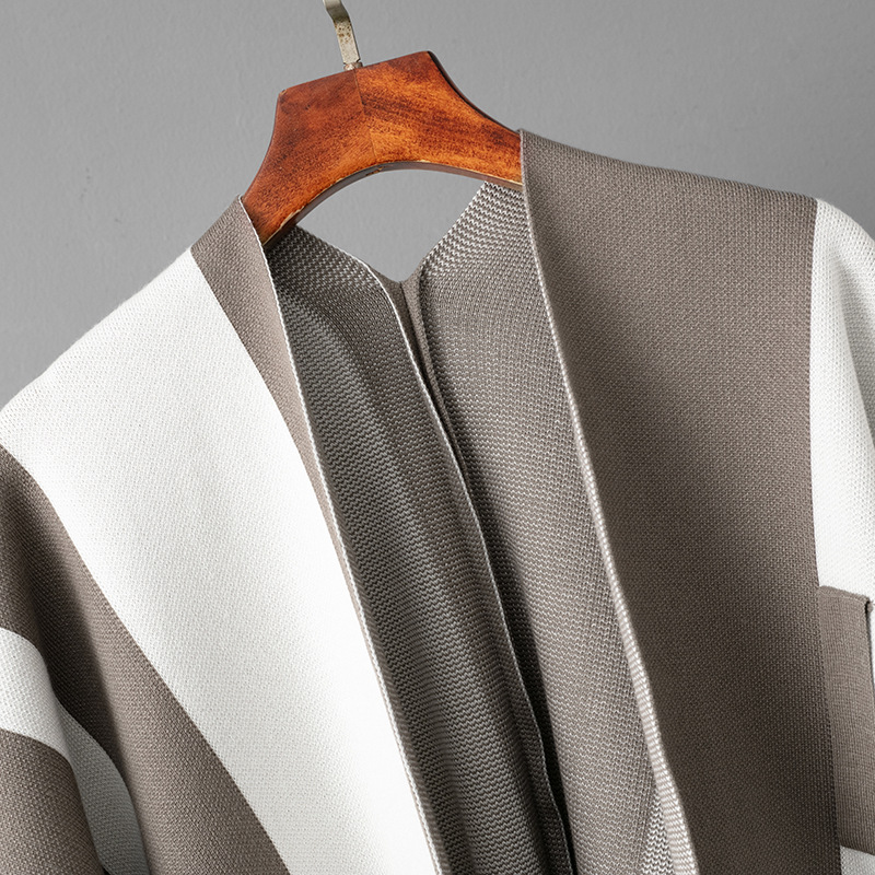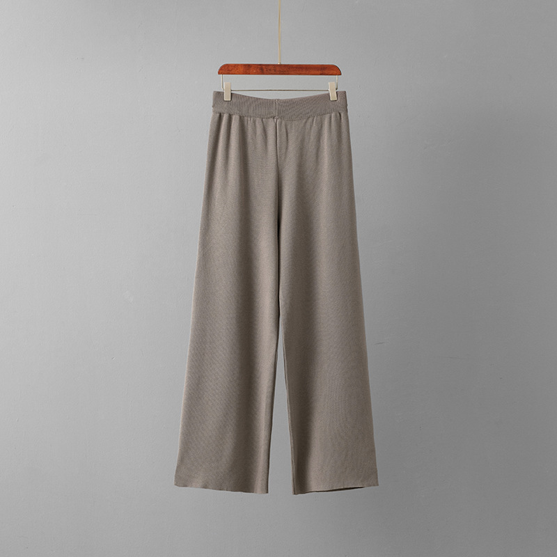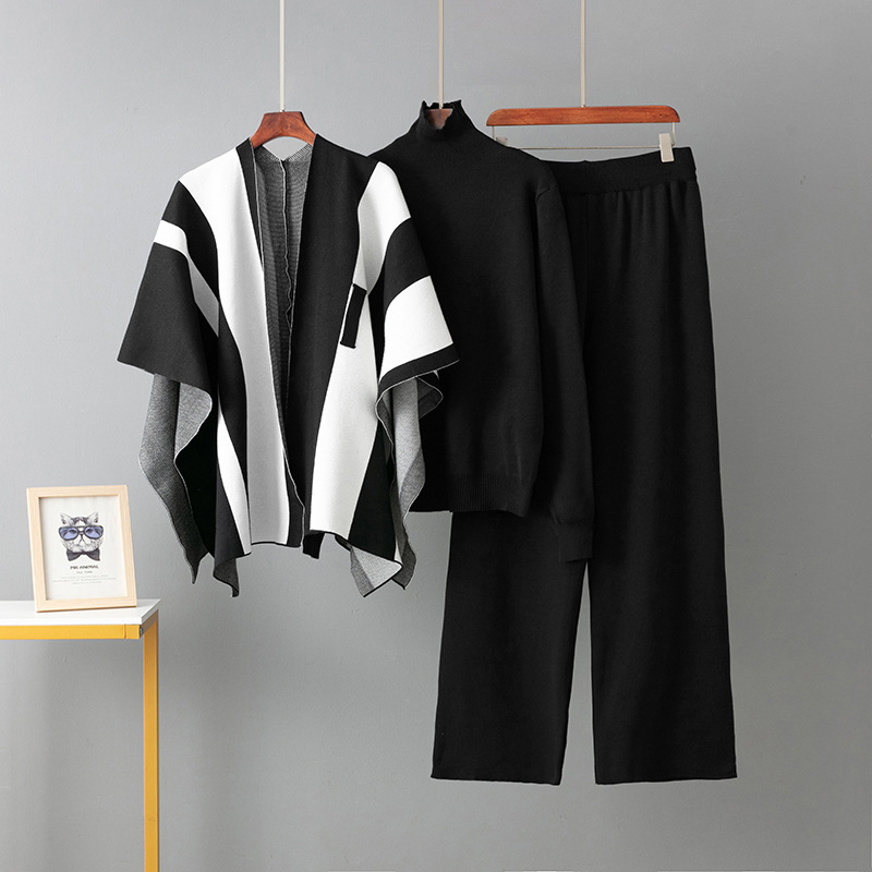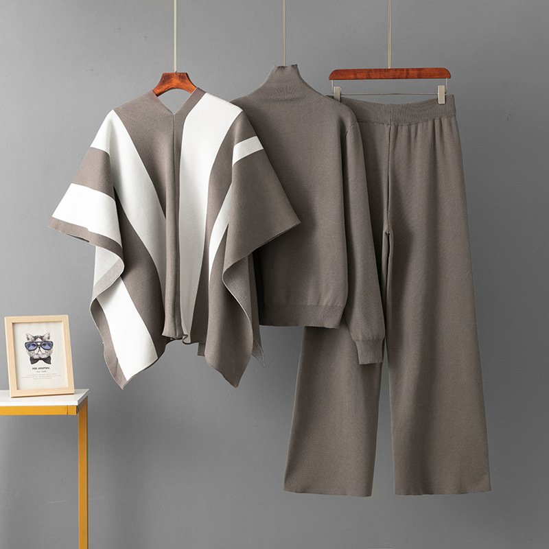 국경을 넘나드는 새로운 대비 색상 프랑스 패션 니트 슈트 숄 + 라운드 넥 스웨터 + 여성용 루즈 와이드 팬츠 3 피스 세트
