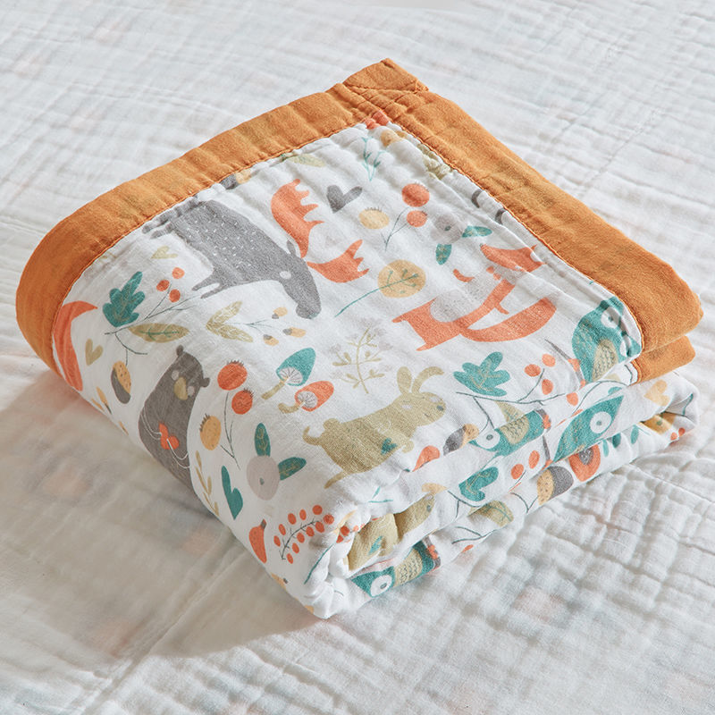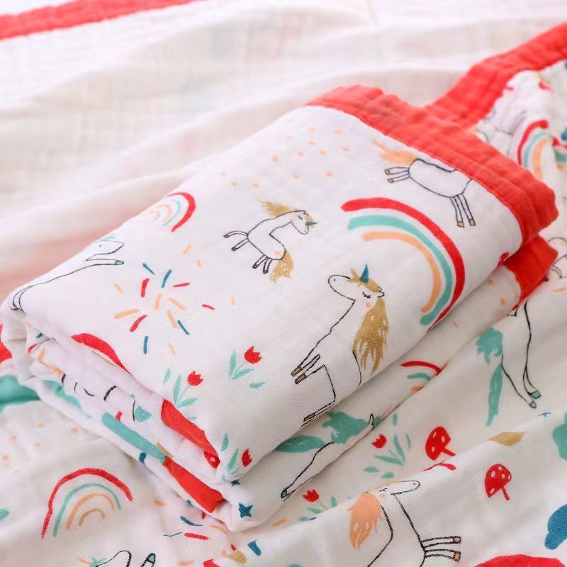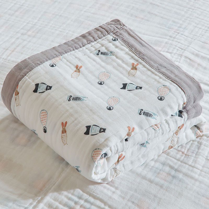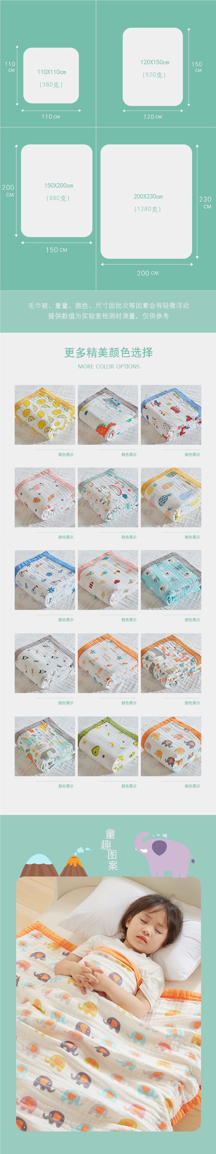 아기 담요 6겹 순면 거즈 담요 흡수성 유아 아기 이불 신생아 만화 점심 시간 이불