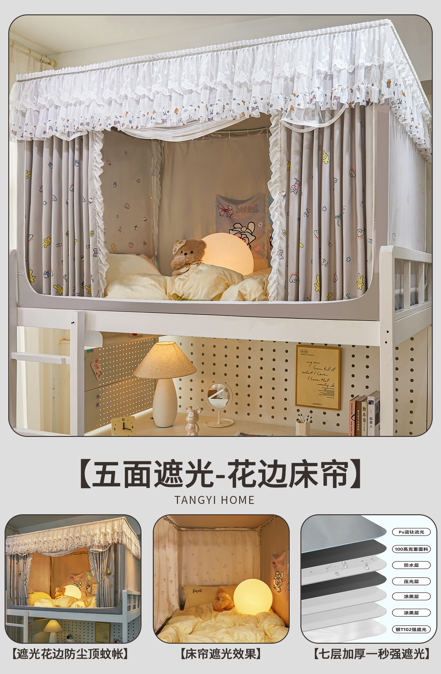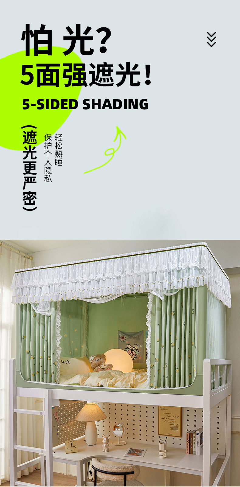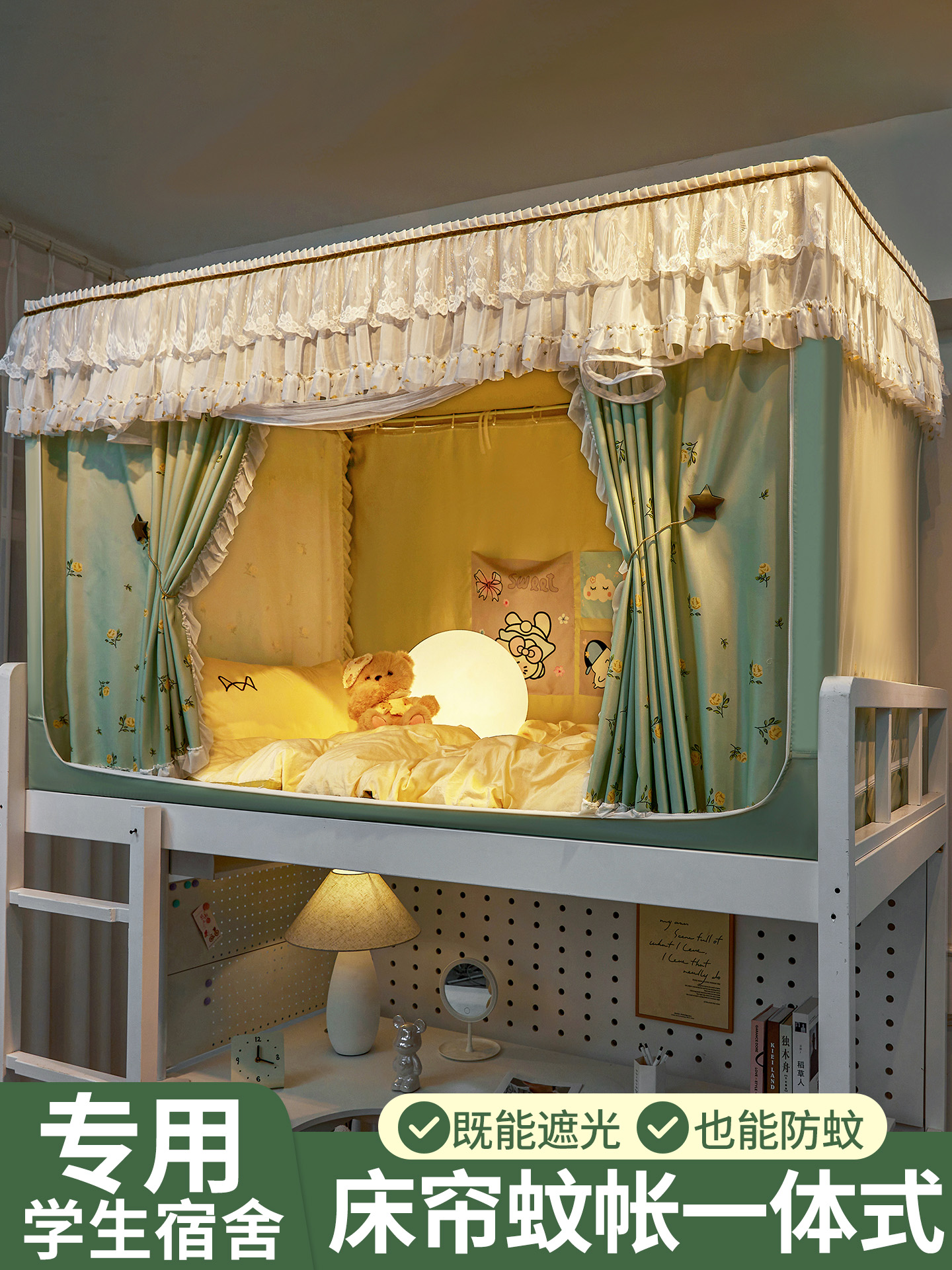 강력한 차광 대학 기숙사 특수 완전 밀폐형 침대 커튼 모기장 일체형 기숙사 이층 침대 설치가 필요 없음