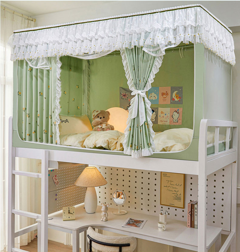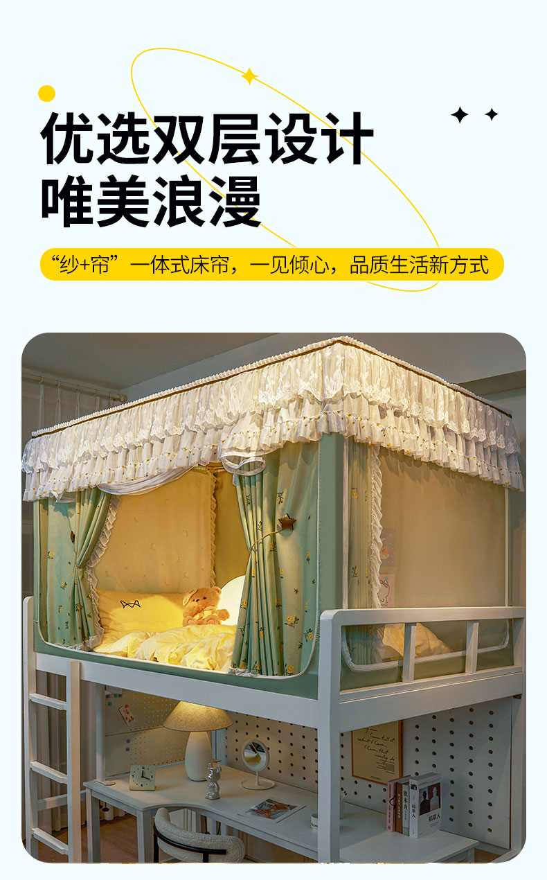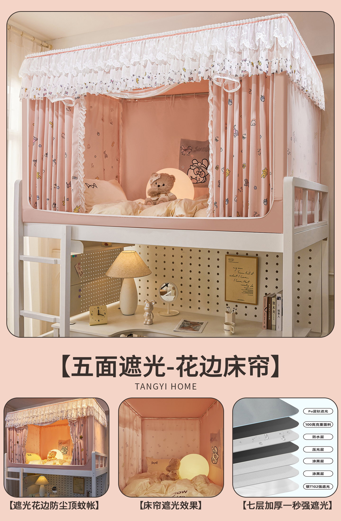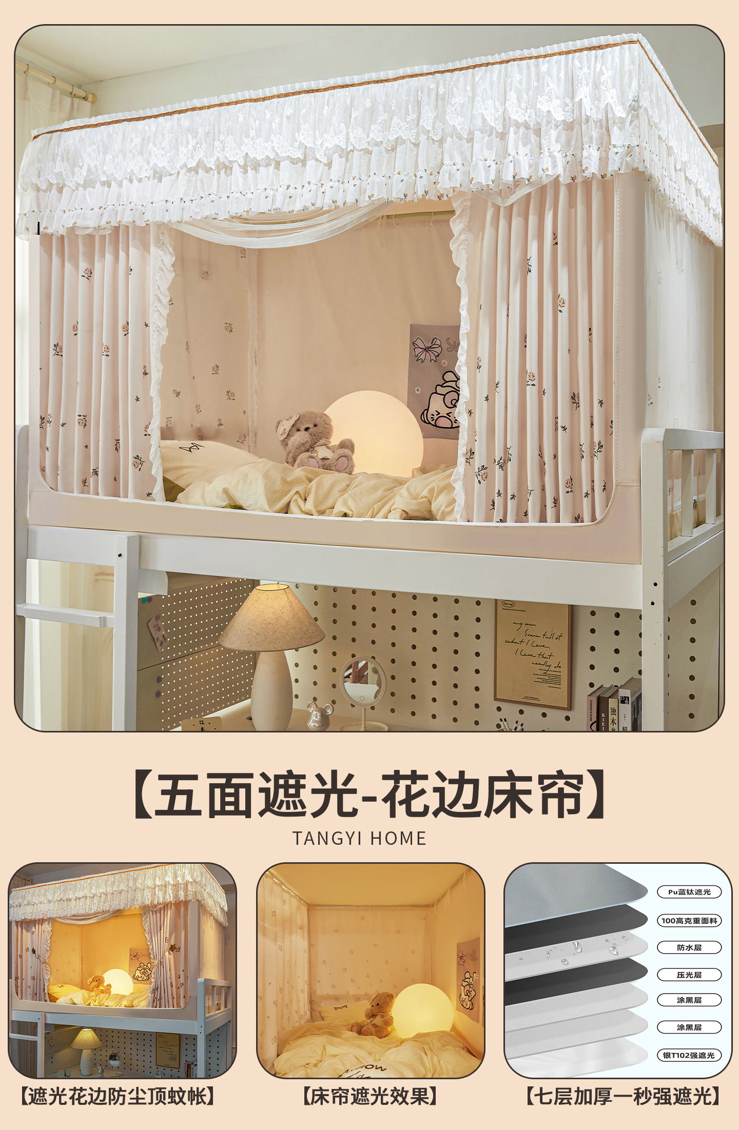강력한 차광 대학 기숙사 특수 완전 밀폐형 침대 커튼 모기장 일체형 기숙사 이층 침대 설치가 필요 없음