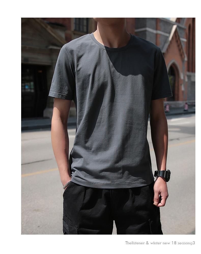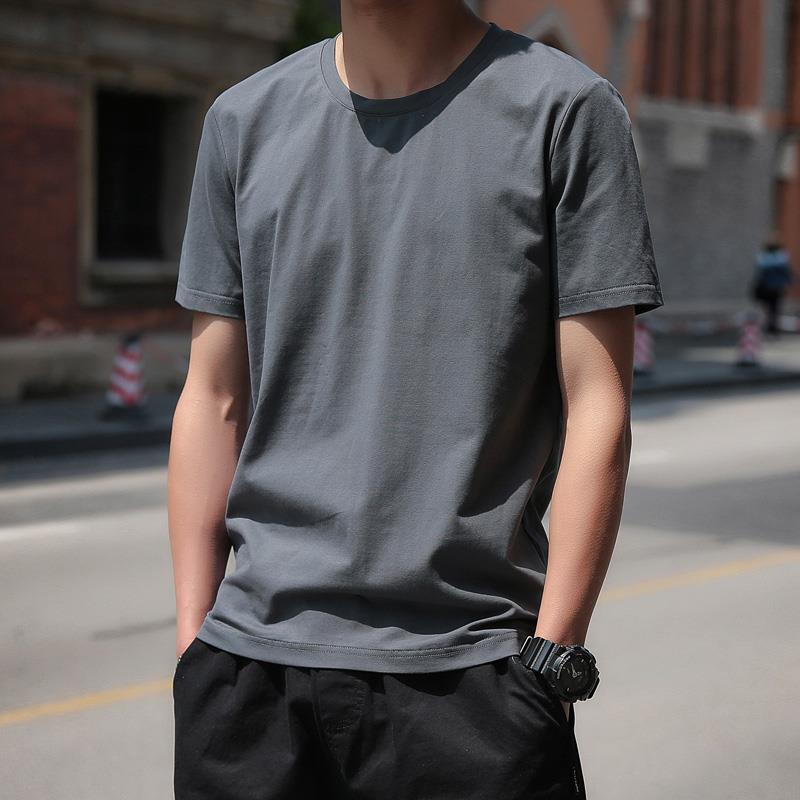 트렌디 브랜드 여름 청소년 솔리드 컬러 바닥 셔츠 트렌디 한국 스타일 슬림 반팔 티셔츠 남성 라운드 넥 캐주얼 반소매 티셔츠 얇은스토어 가기