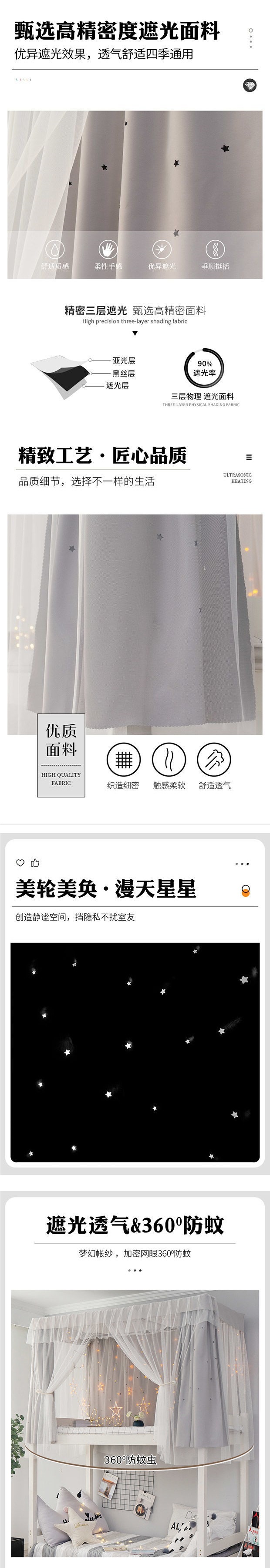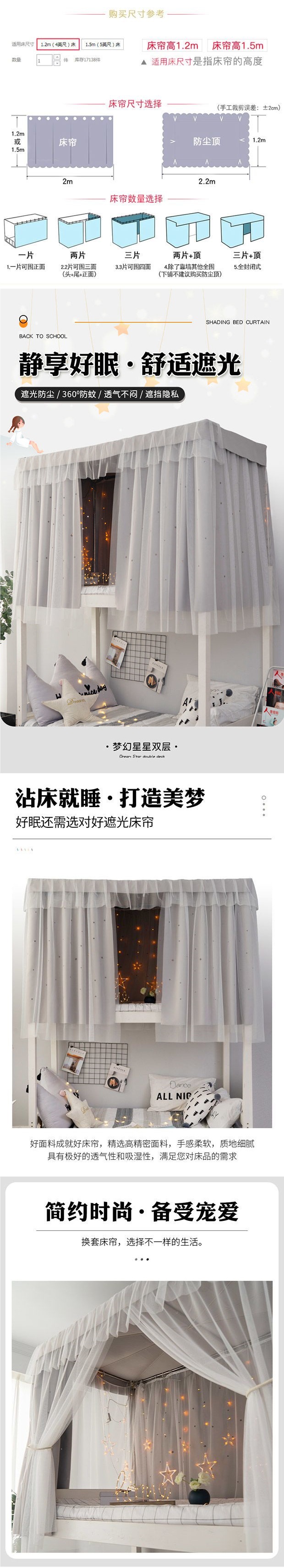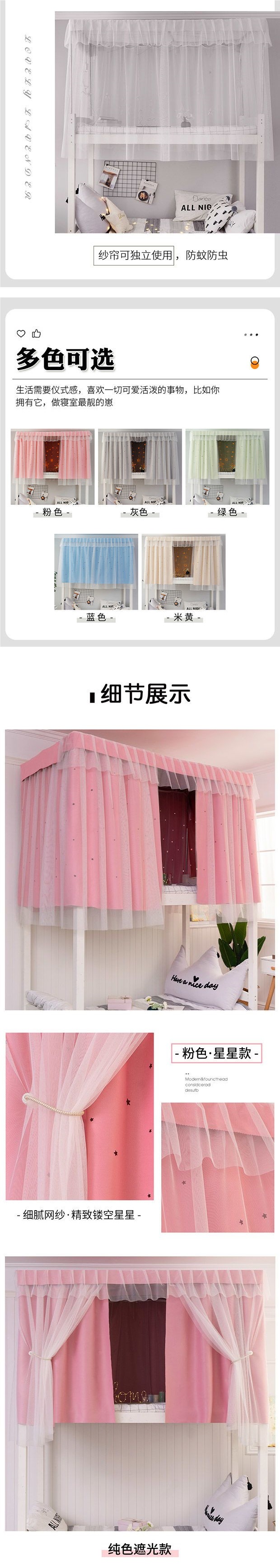 상단 침대용 침대 커튼, 학생 기숙사 차광 천, 모기장, 하단 침대용 침대 커버, 여성용 공주풍 커튼스토어 가기