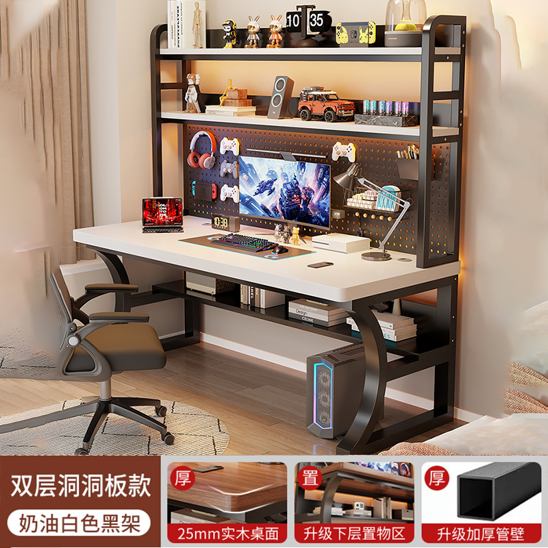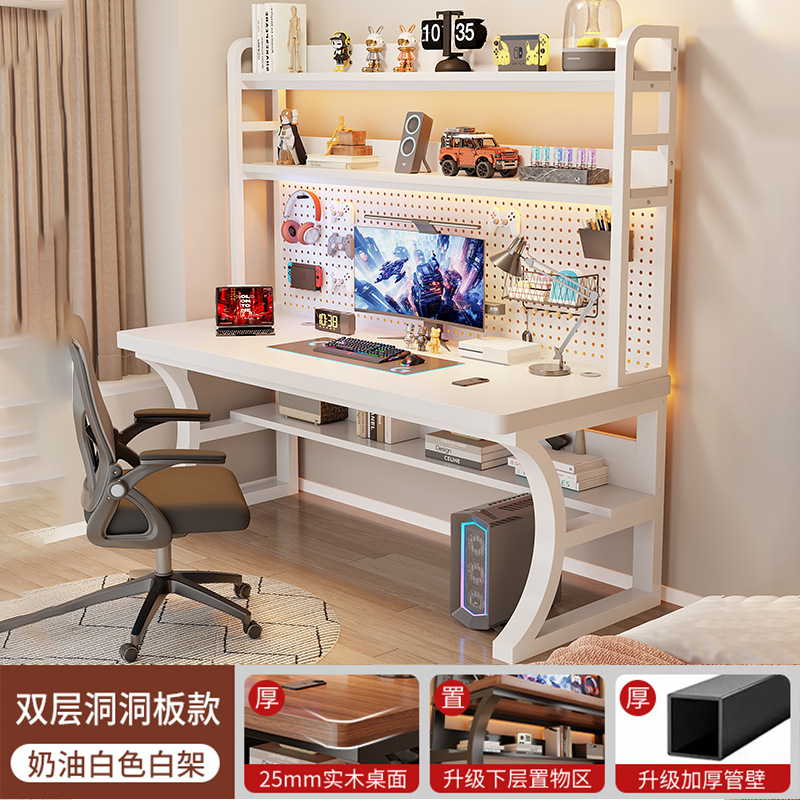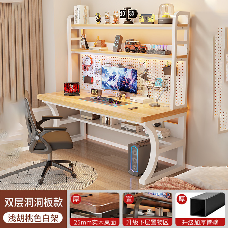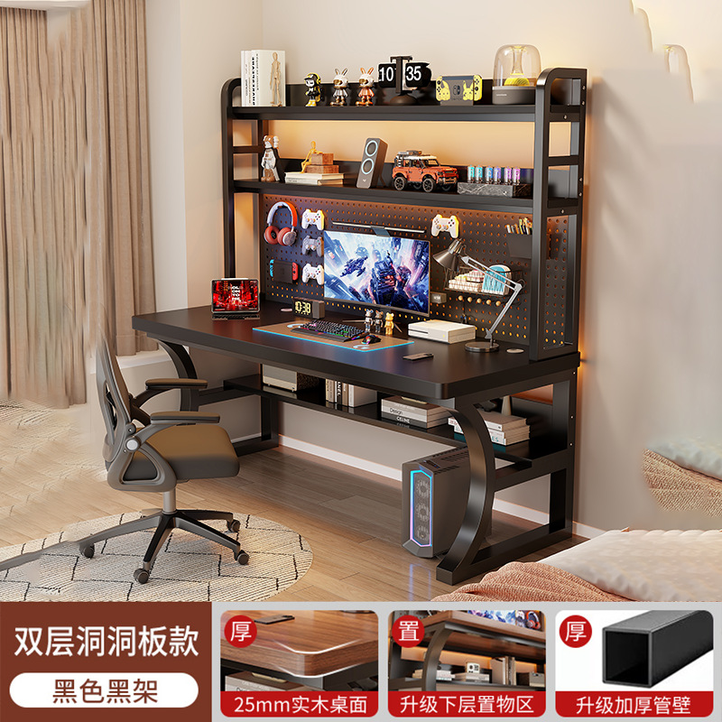 단단한 나무 책상 책장 통합 테이블 침실 홈 학생 책상 간단한 구멍 보드 책상 컴퓨터 책상