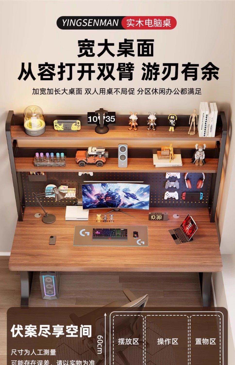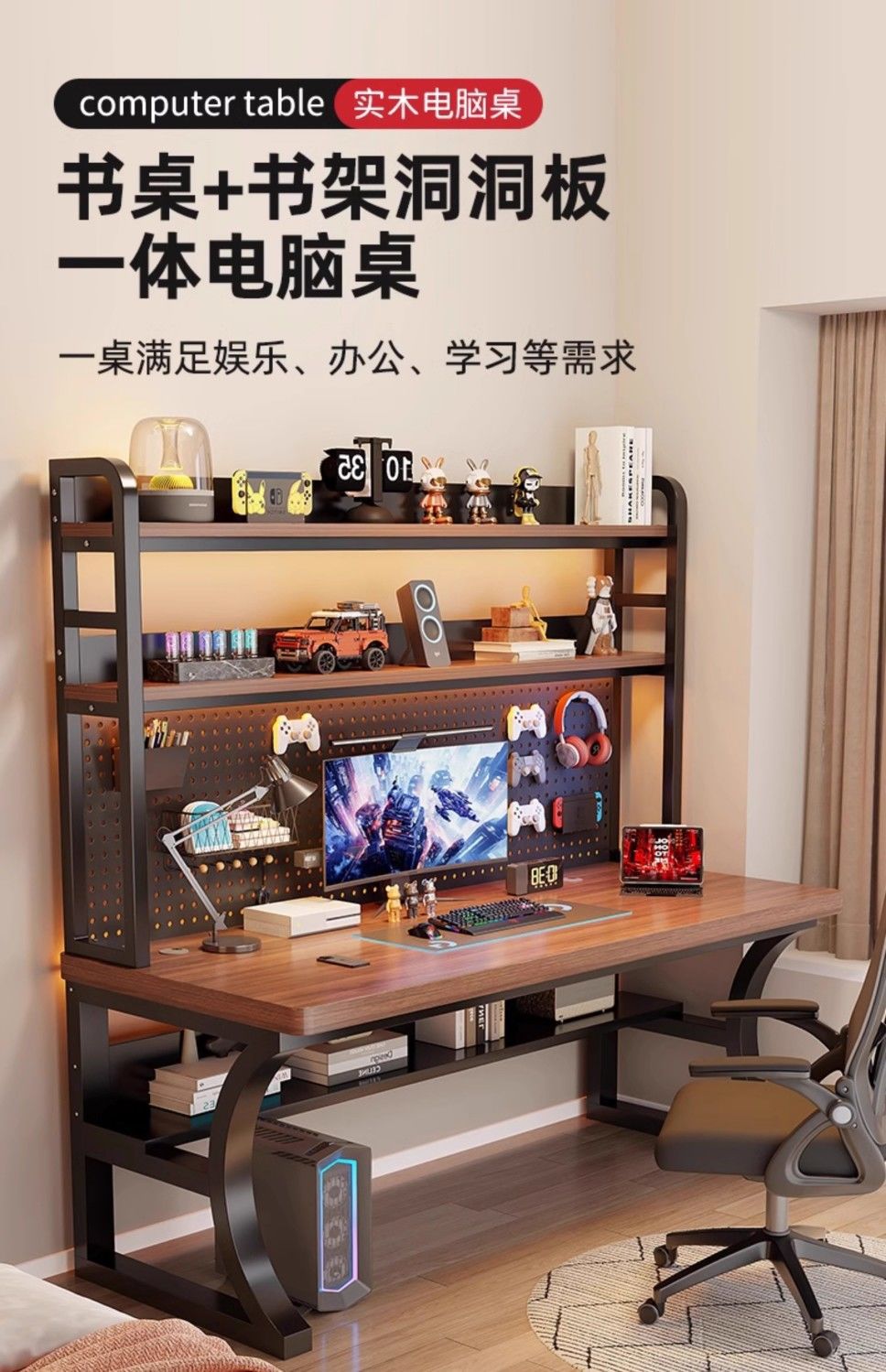 단단한 나무 책상 책장 통합 테이블 침실 홈 학생 책상 간단한 구멍 보드 책상 컴퓨터 책상스토어 가기