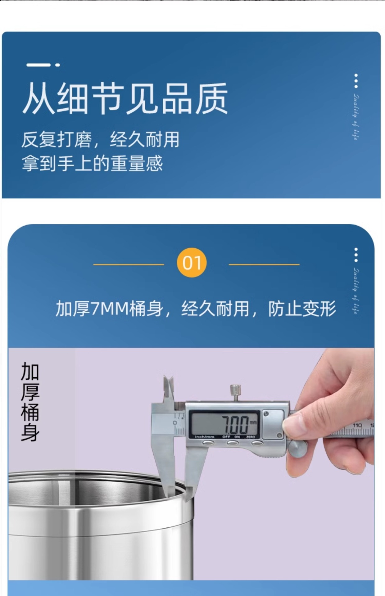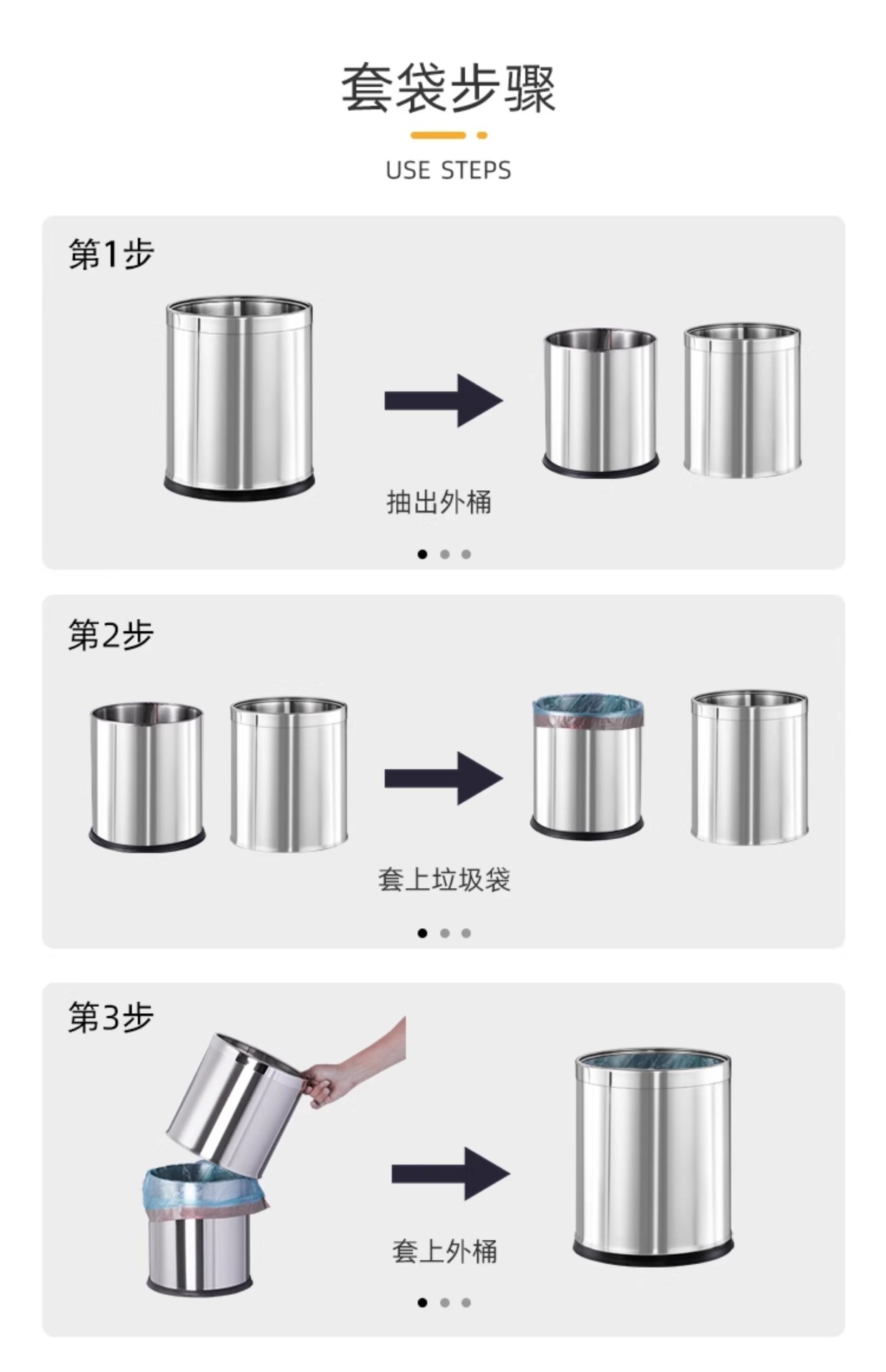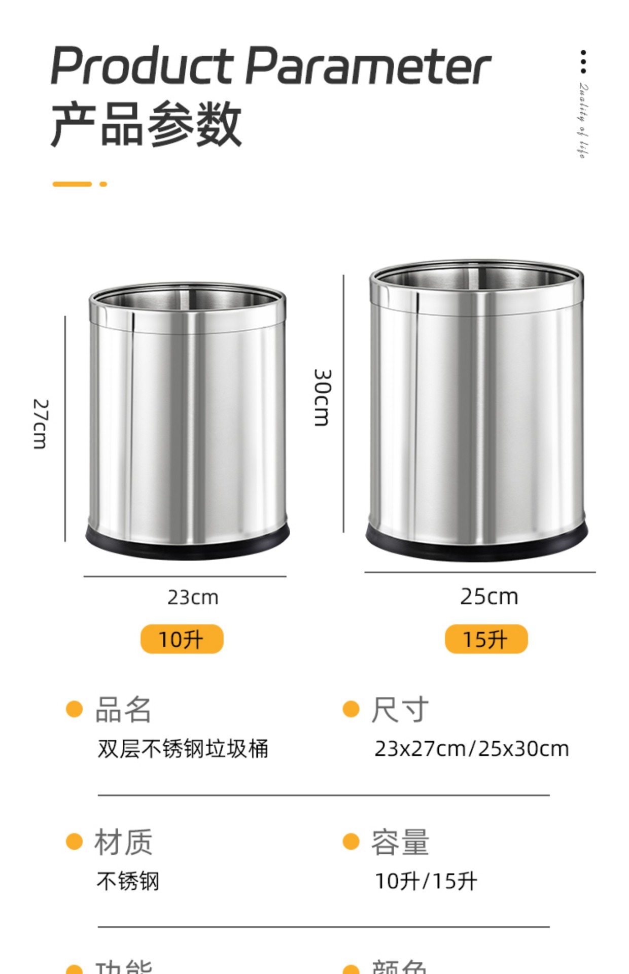 • 10L 두꺼운 이중벽 스테인리스 쓰레기통(스테인리스)