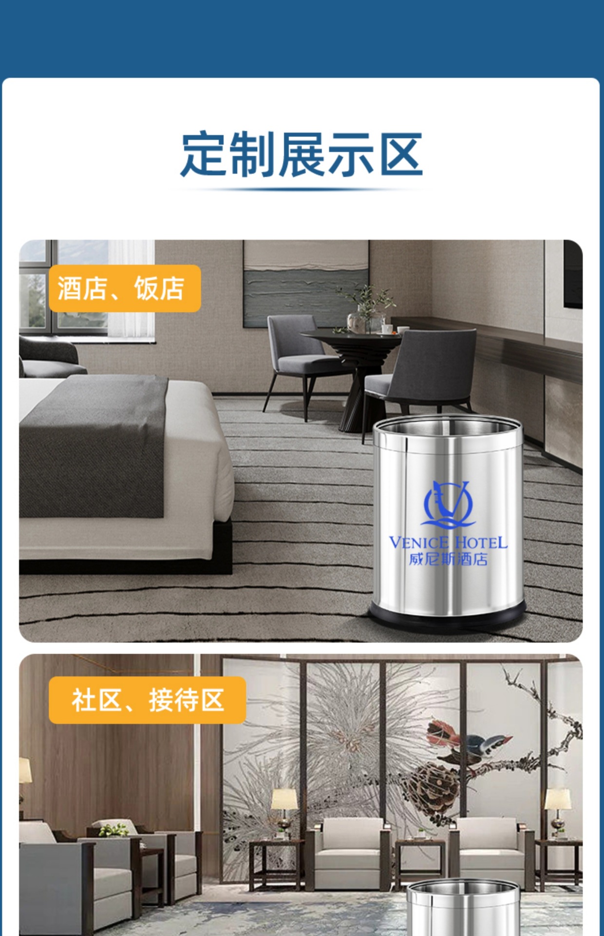 뚜껑이 없는 이중층 스테인레스 스틸 쓰레기통, 상업용 가정용 체스 및 카드 룸, 공공 장소, 방화 및 난연성 304 맞춤형