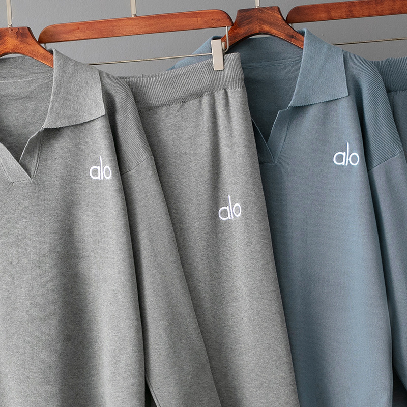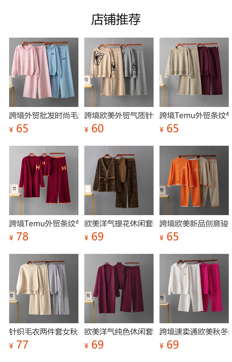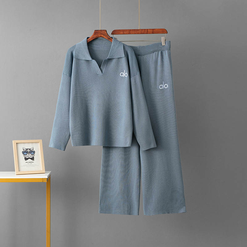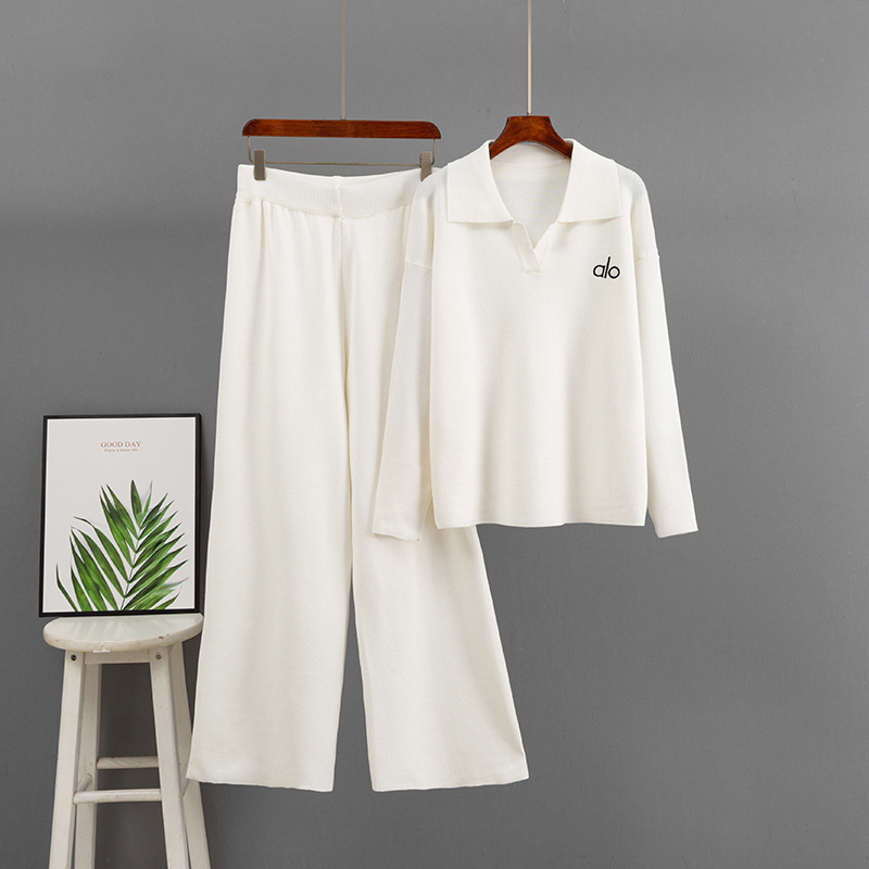 국경 간 대외 무역 도매 기질 니트 양복 폴로 칼라 캐주얼 스웨터 + 루즈 양복 와이드 팬츠 투피스 세트스토어 가기