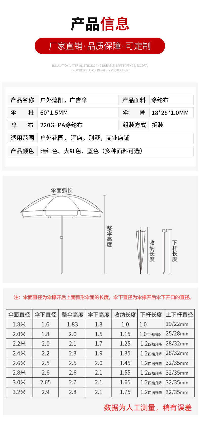 맞춤형 전체 알루미늄 손으로 밀어 올려지는 우산, 야외 사각 우산, 로고 인쇄 광고 우산, 안뜰 해변 대형 태양 우산