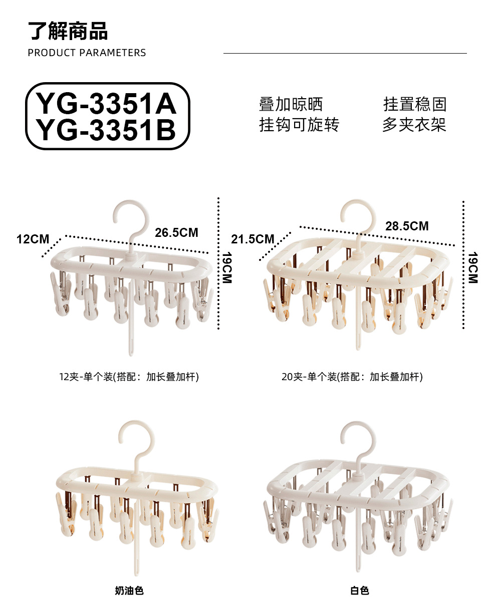 • [두꺼운 모델] 쌓을 수 있는 건조대 20개 클립 - 크림색