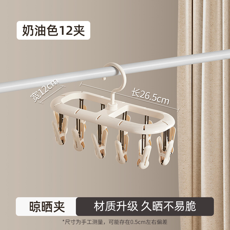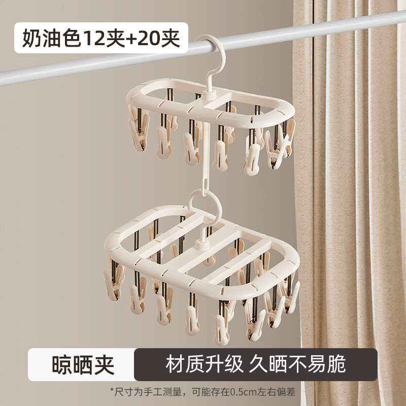 • [두꺼운 모델] 쌓을 수 있는 건조대 12개 클립 - 크림색
