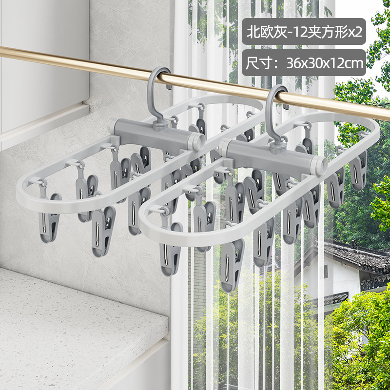 • [표준 모델] 접이식 사각 12클립 양말걸이 - 2개 팩