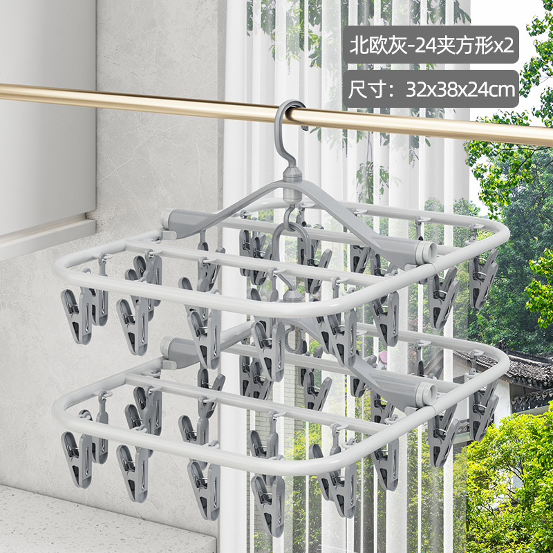 • [표준 모델] 접이식 사각 24클립 양말걸이