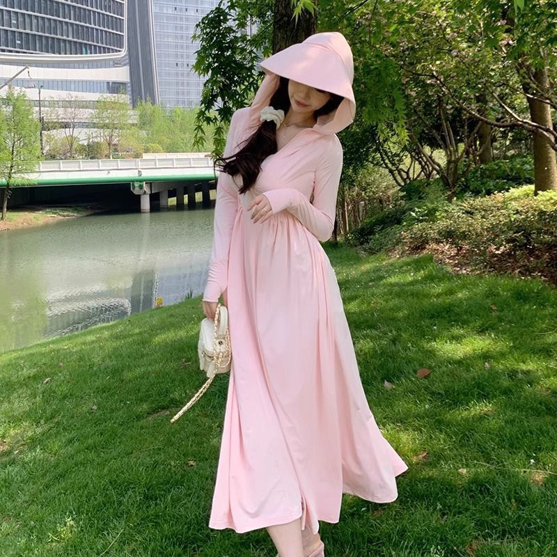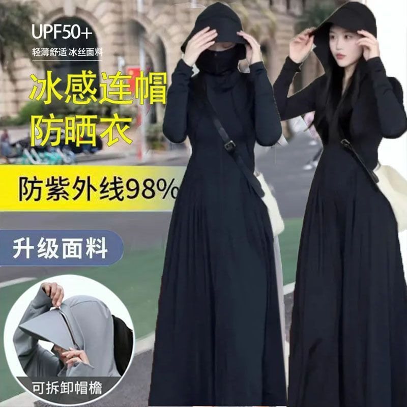 여성용 자외선 차단 의류, 가볍고 통기성이 뛰어난 야외 자외선 차단 의류 재킷, 여름용 매우 긴 전신 허리 슬리밍 자외선 차단 스커트 신제품스토어 가기