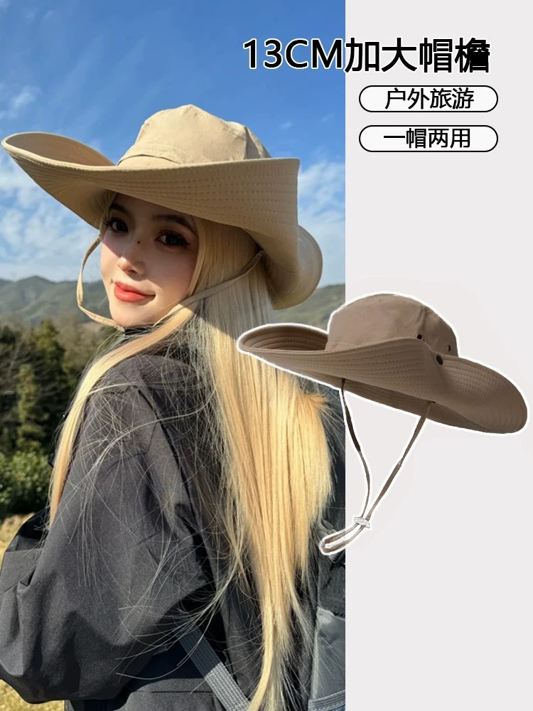 여성을위한 복고풍 대형 챙 하이킹 모자 여름 야외 캠핑 태양 모자 서양 카우보이 모자 간단한 태양 보호 어부 모자스토어 가기