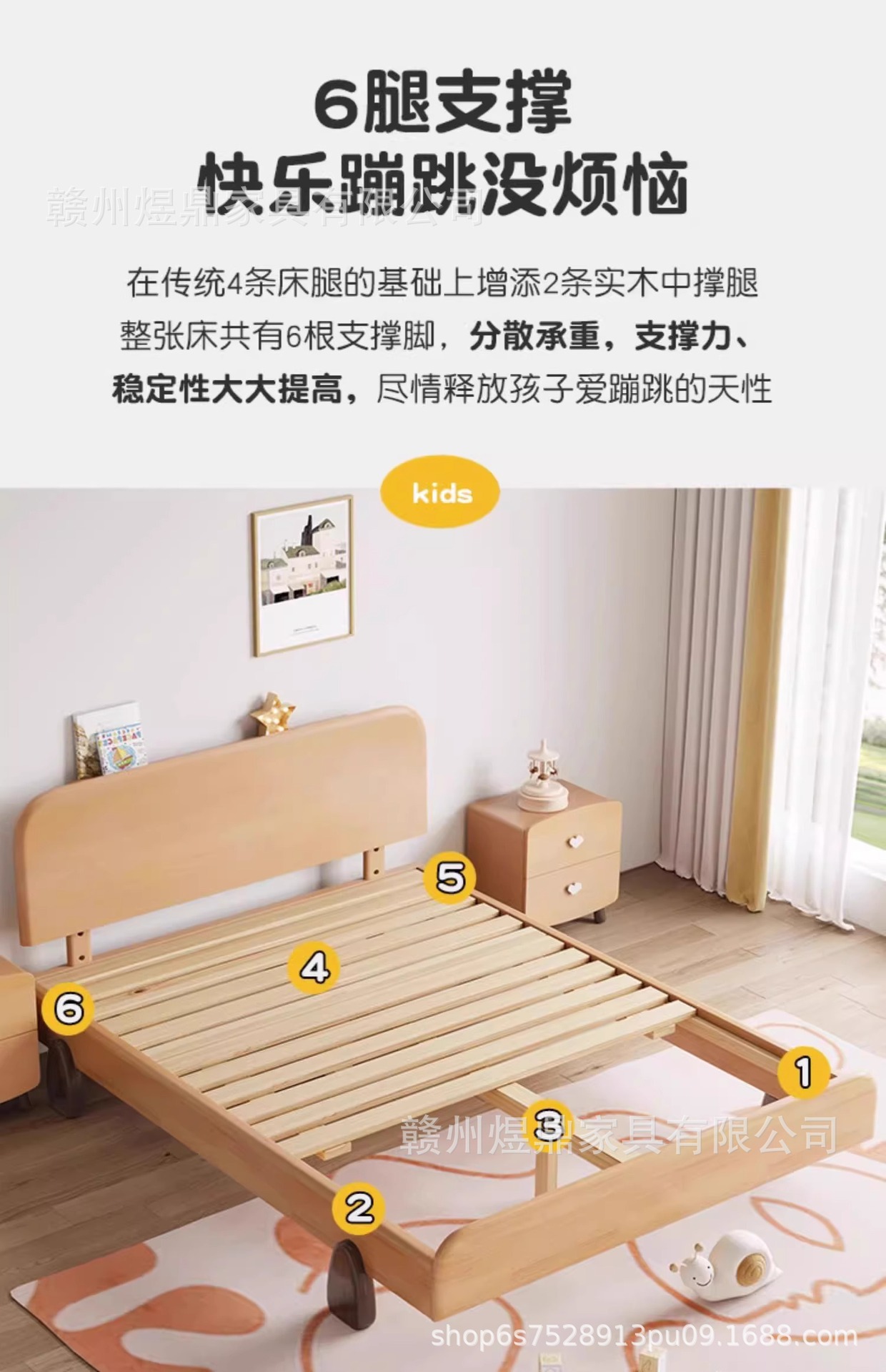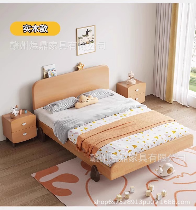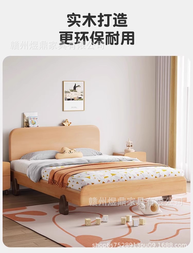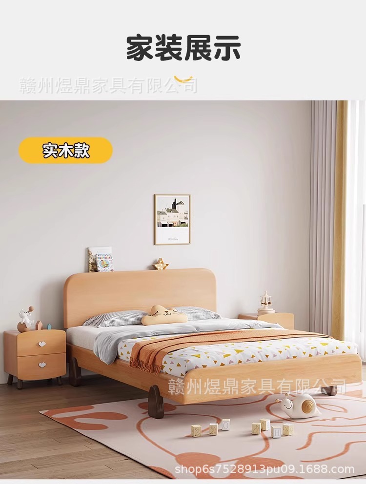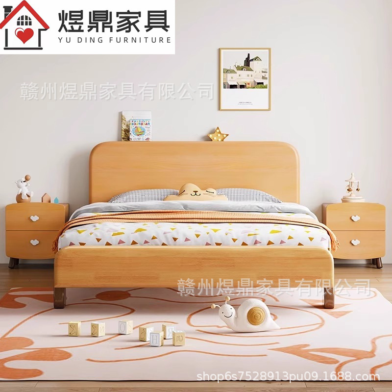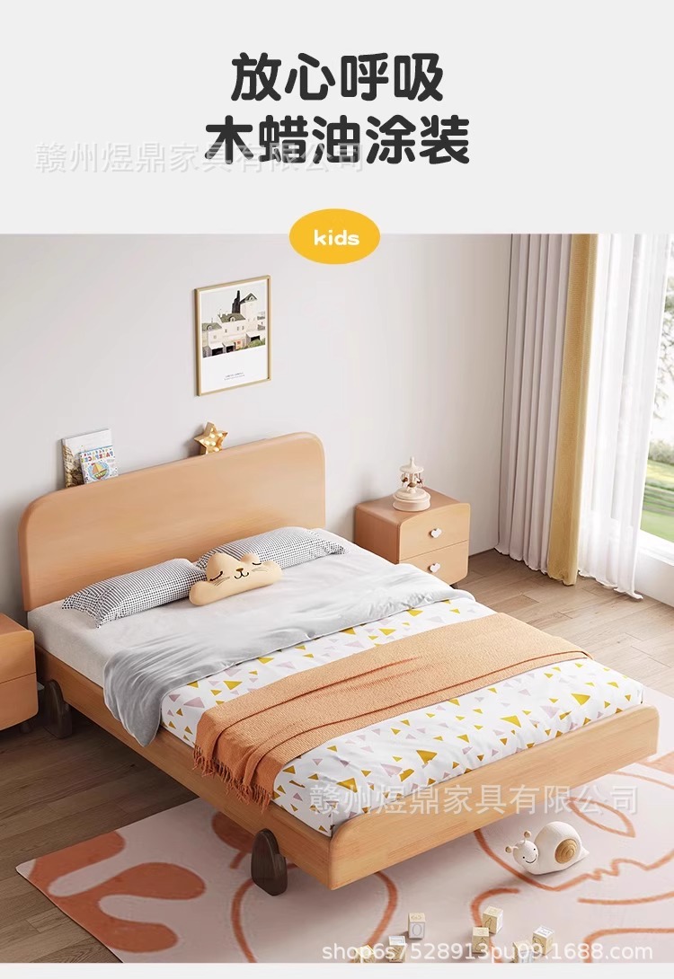단단한 나무 현대 미니멀리스트 어린이 침대 소년 침대 친환경 목재 왁스 오일 침대 1.2m 십대 소녀 침실 만화 침대
