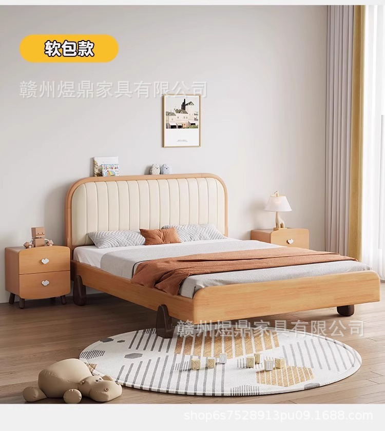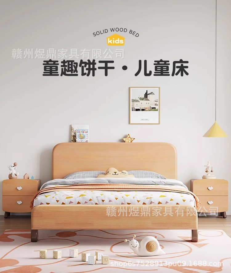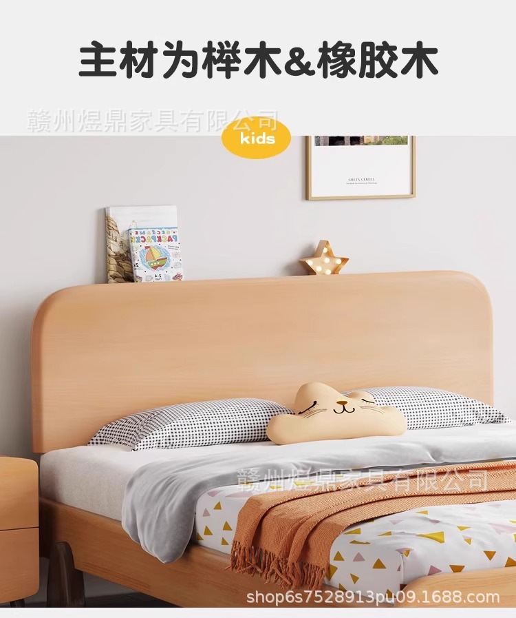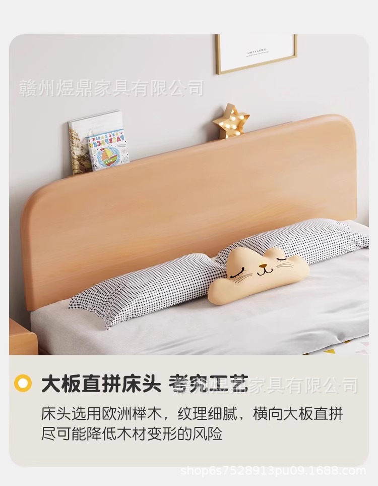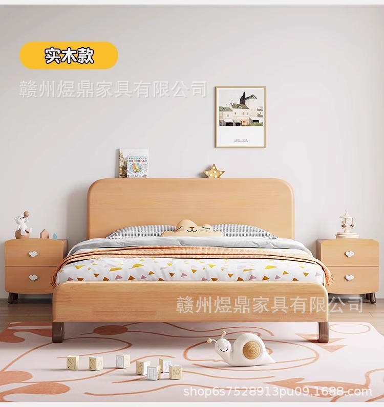 단단한 나무 현대 미니멀리스트 어린이 침대 소년 침대 친환경 목재 왁스 오일 침대 1.2m 십대 소녀 침실 만화 침대스토어 가기