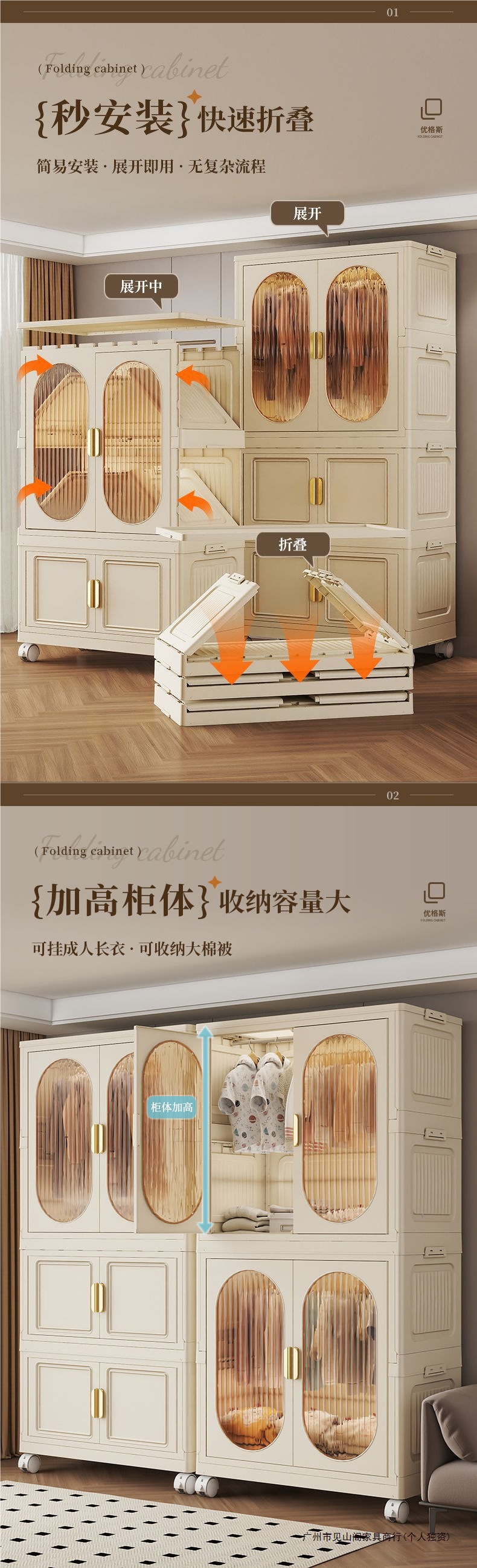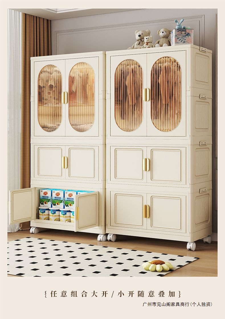 접이식 수납 캐비닛 어린이 옷장 이중 도어 플라스틱 캐비닛 침실 룸 아기 간단한 설치 수납 캐비닛
