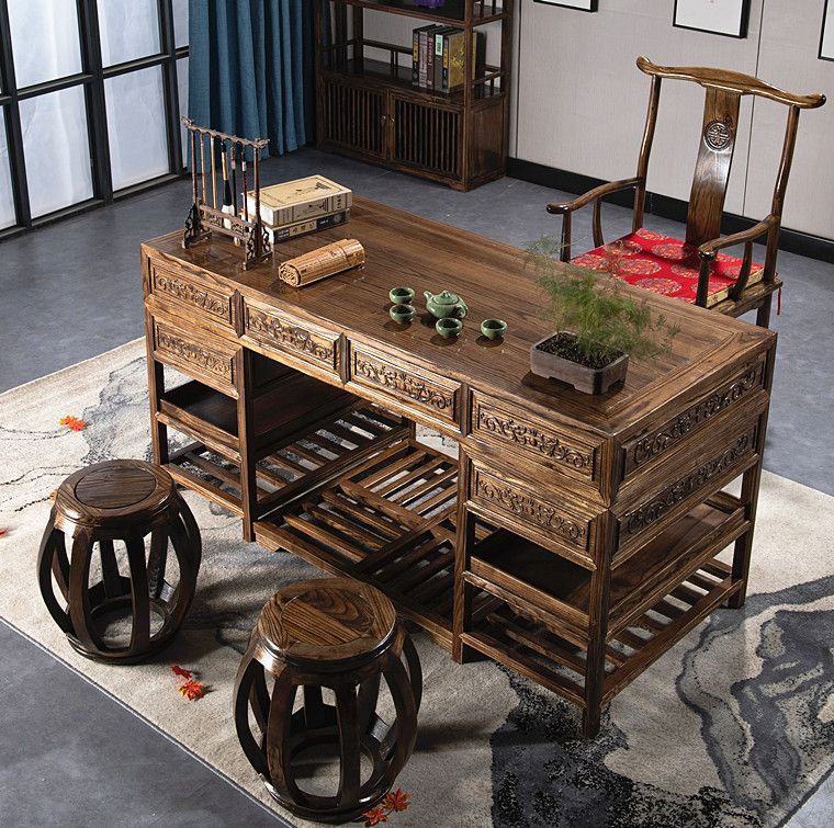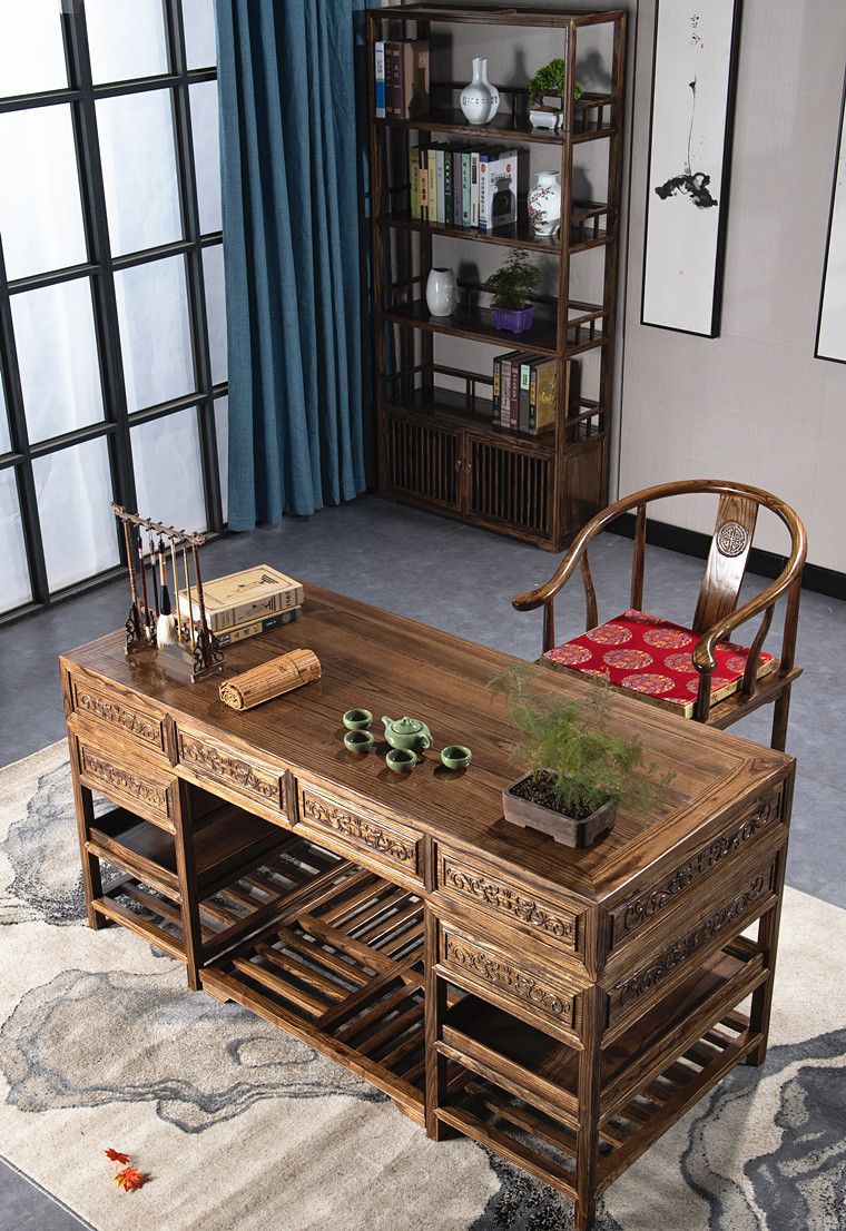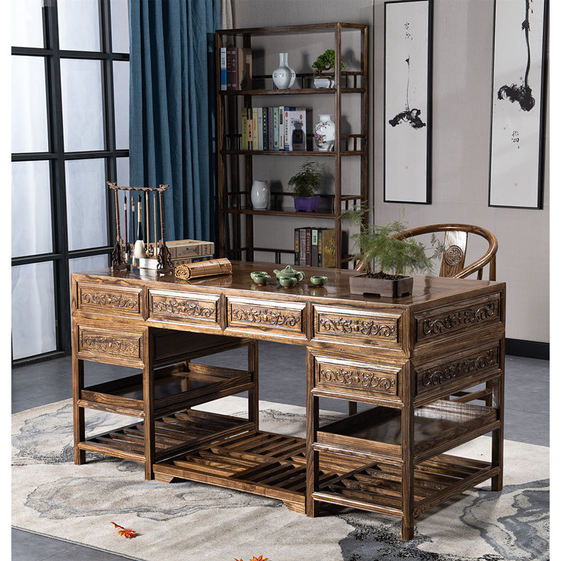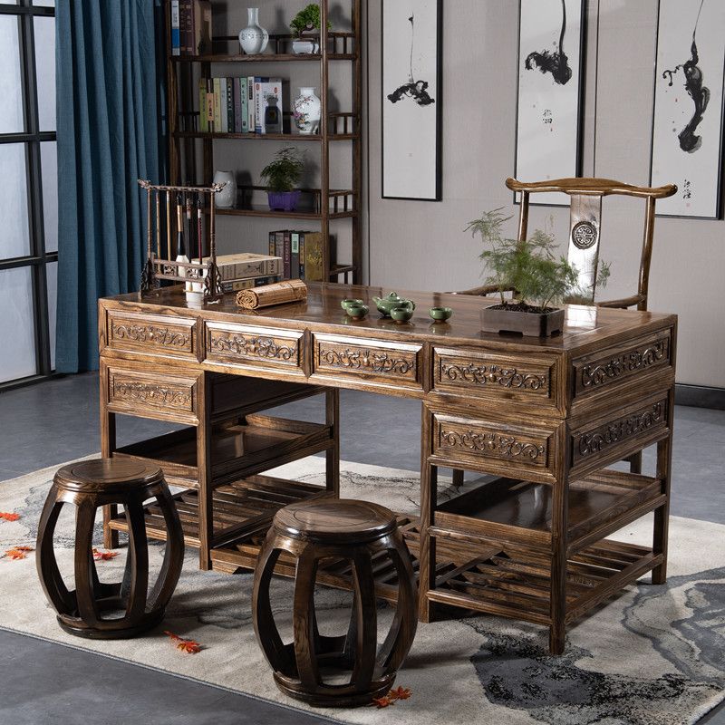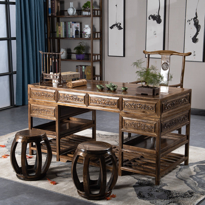 중국 서예 테이블 단단한 나무 대형 책상 보스 사무실 테이블과 의자 조합 간단한 책상 의료 미용 한의학 클리닉 테이블스토어 가기