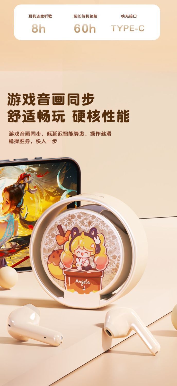 Honor of Kings 2025 블루투스 이어폰 인이어 무선 게임용 음악 이어폰 초장시간 배터리 수명 양방향 스테레오 사운드