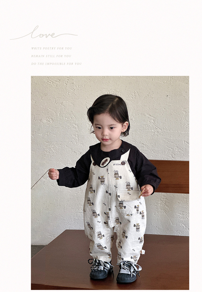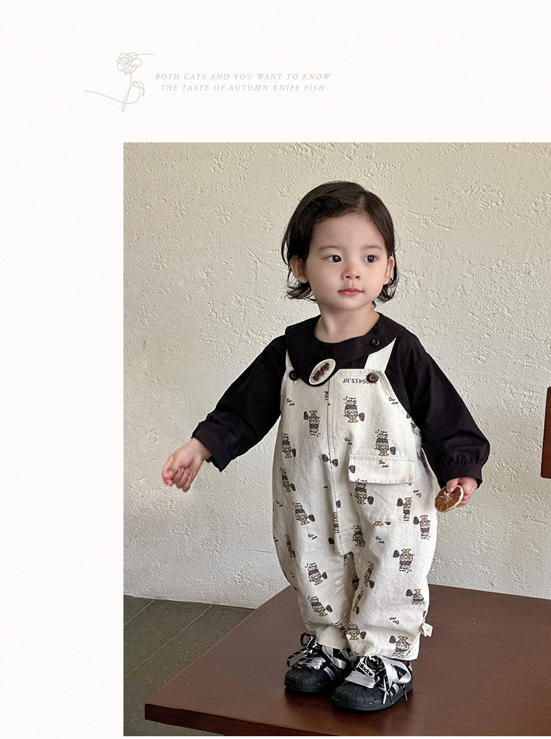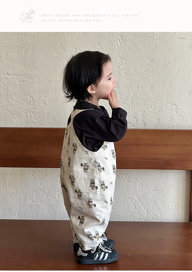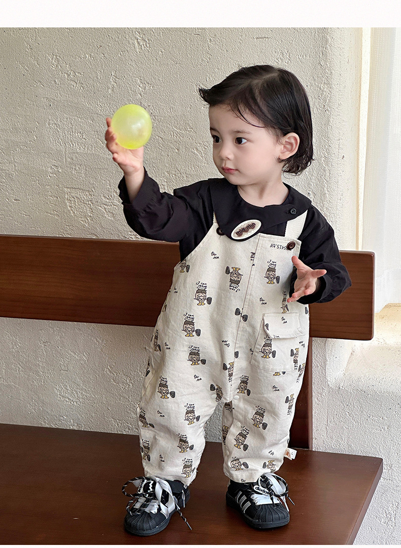 한국 아동복 트렌디 브랜드 작은 소년 정장 봄, 가을 비대칭 대형 라펠 셔츠 + 만화 작업복 투피스 세트 1스토어 가기