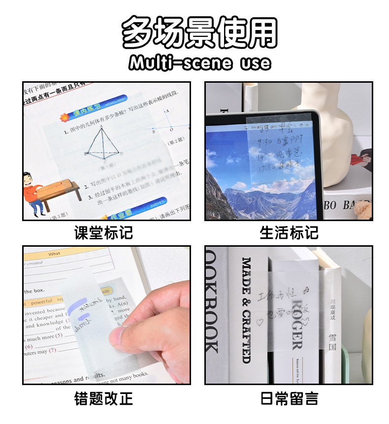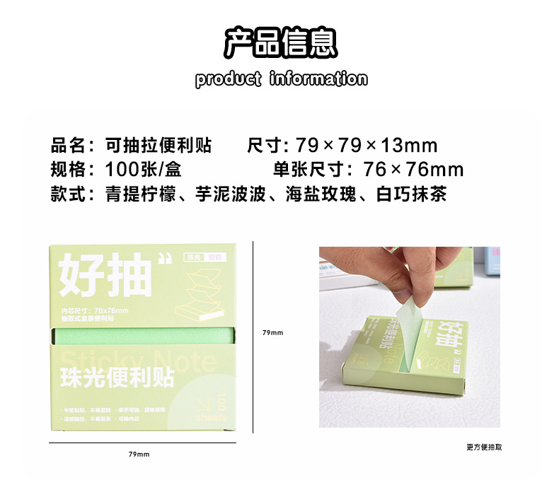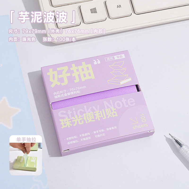 투명한 N회 스티커 박스형 고급 메모 메시지 스티커로 부착할 수 있는 펄 광택 포스트잇 노트로 학생들에게 편리함을 보상합니다.