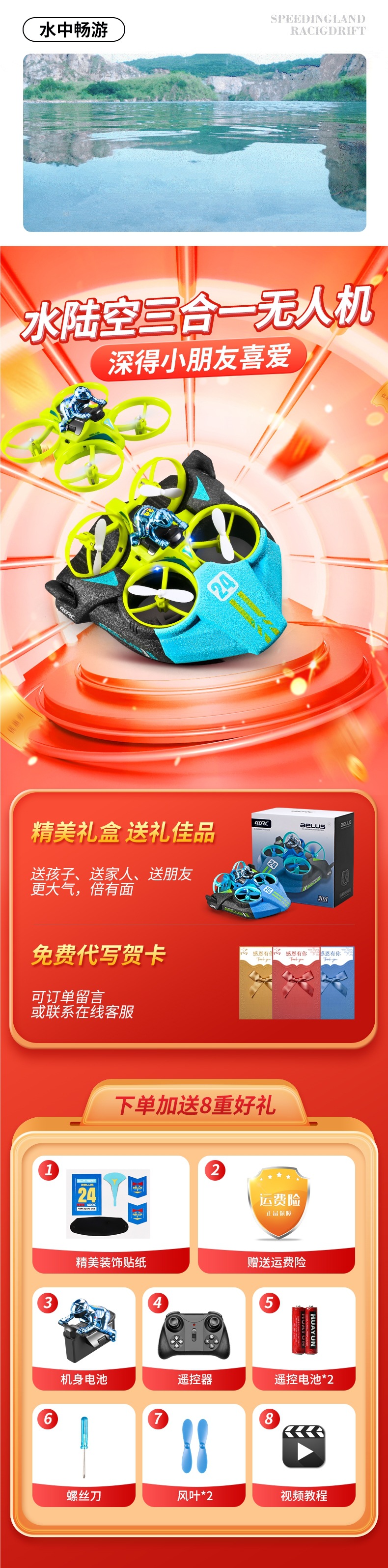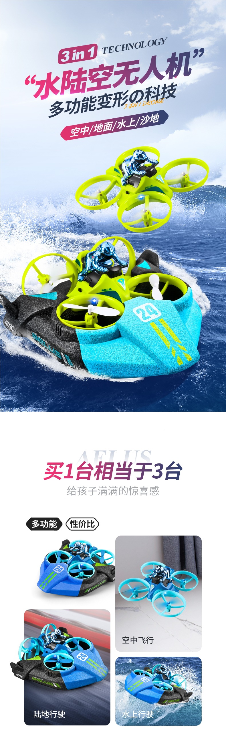 드론 어린이 원격 제어 항공기 장난감 소년 헬리콥터 수륙공 3-in-1 초등학생 항공기 수중스토어 가기