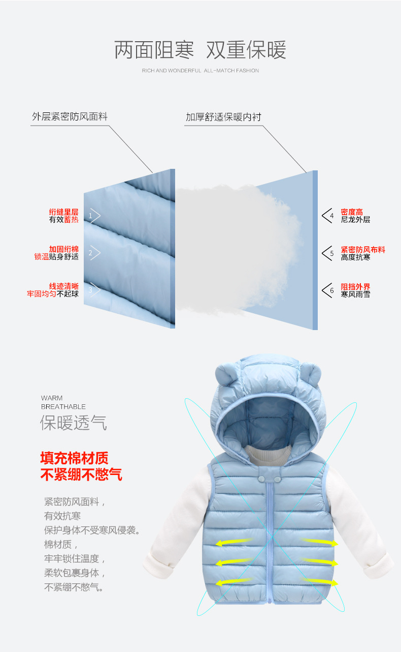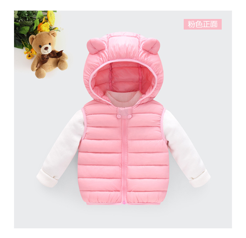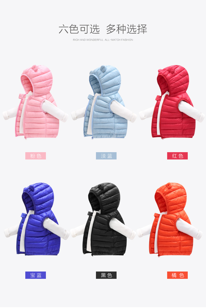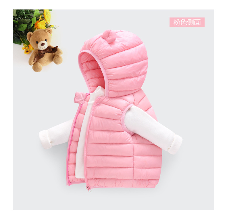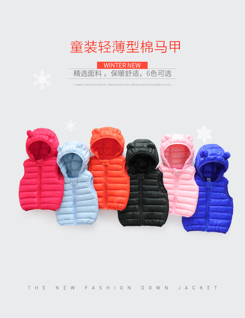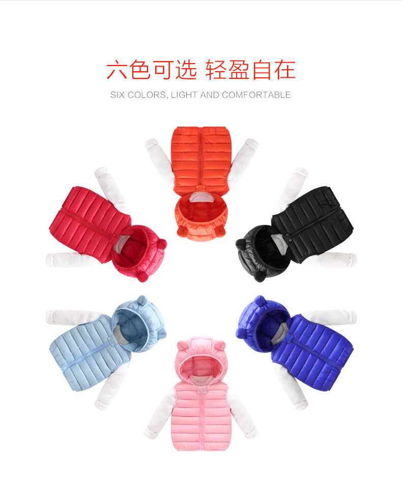 대외 무역 가을, 겨울 소년과 소녀 조끼 단색 유아 캔디 컬러 귀여운 서양식 후드 면화 조끼 어린이스토어 가기