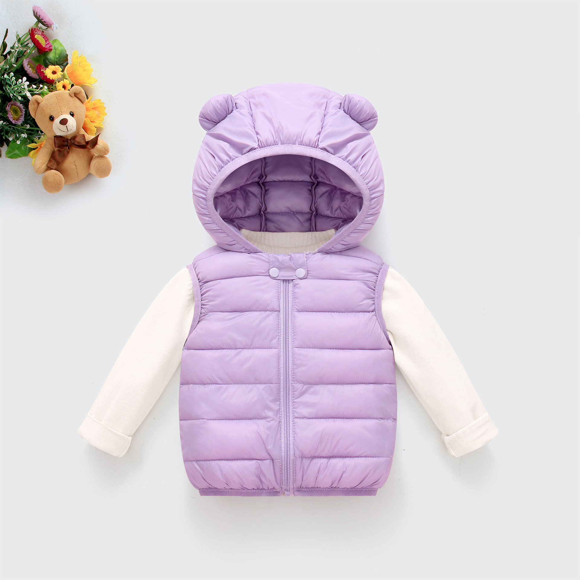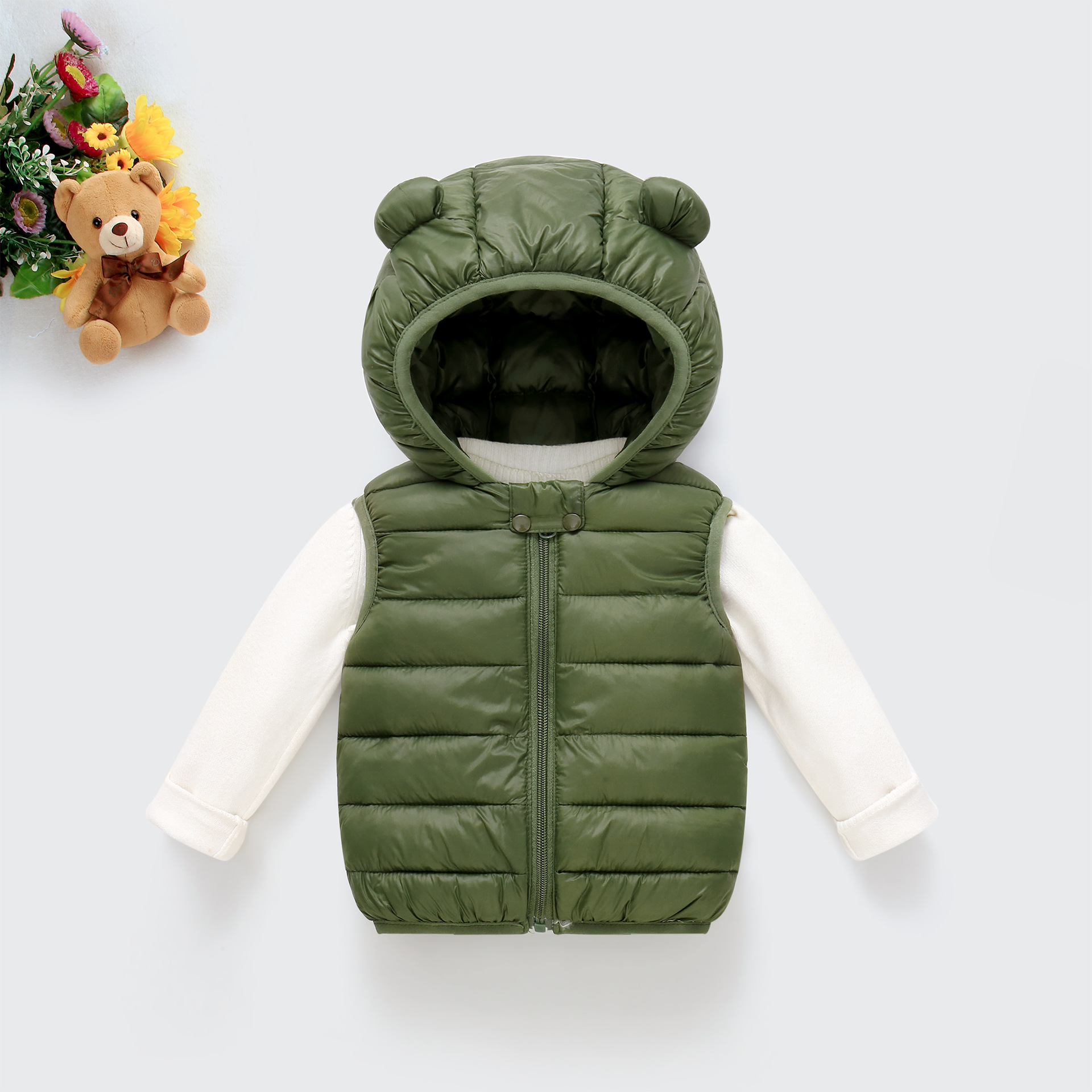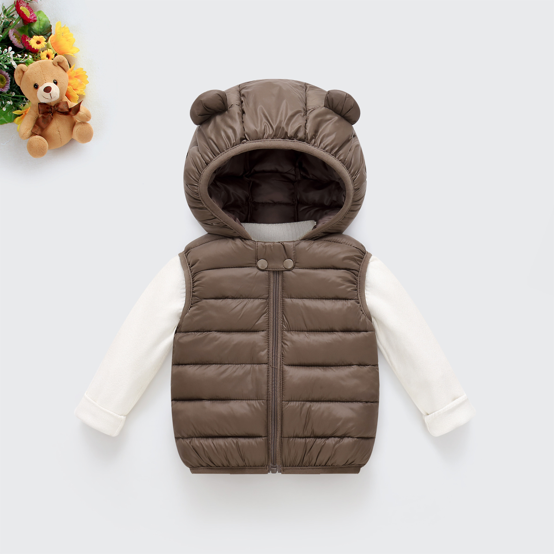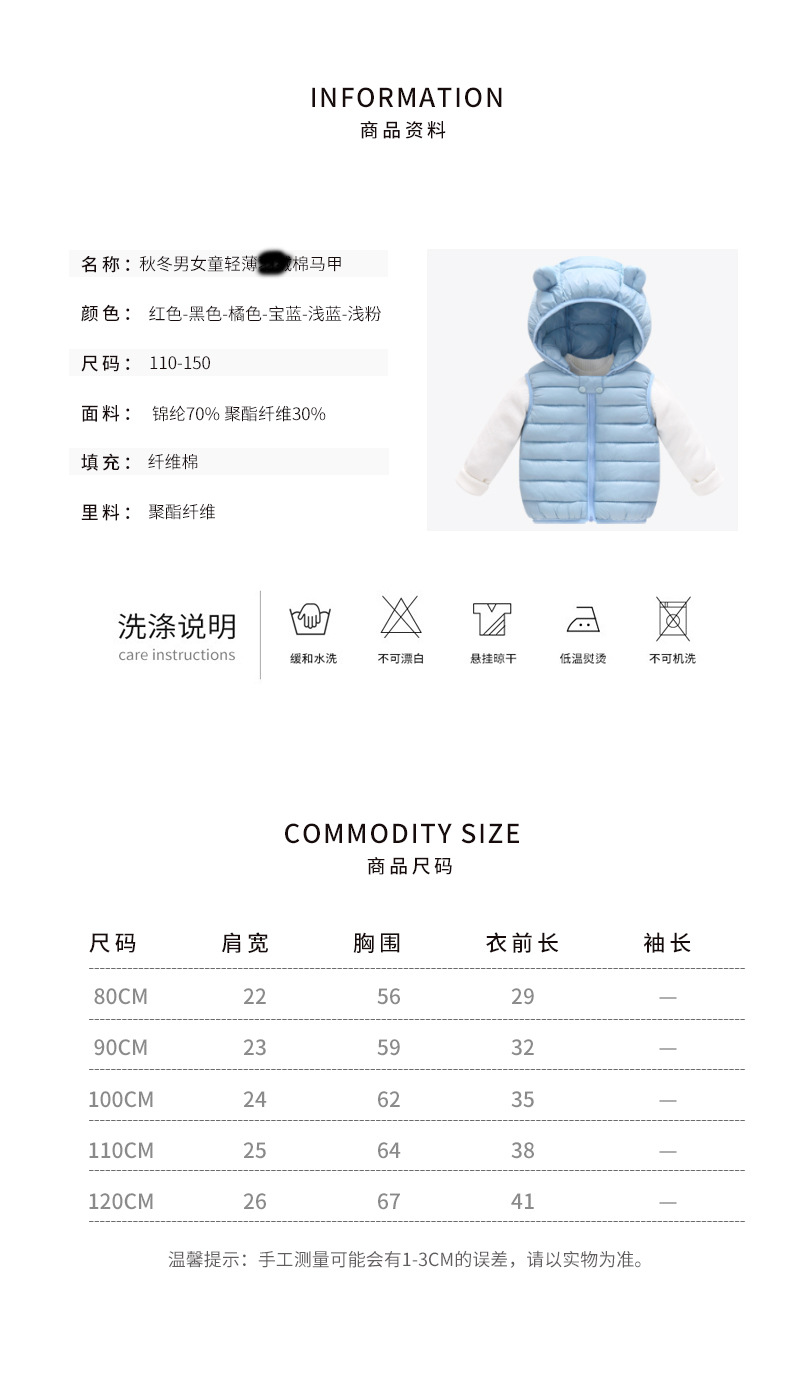 대외 무역 가을, 겨울 소년과 소녀 조끼 단색 유아 캔디 컬러 귀여운 서양식 후드 면화 조끼 어린이스토어 가기