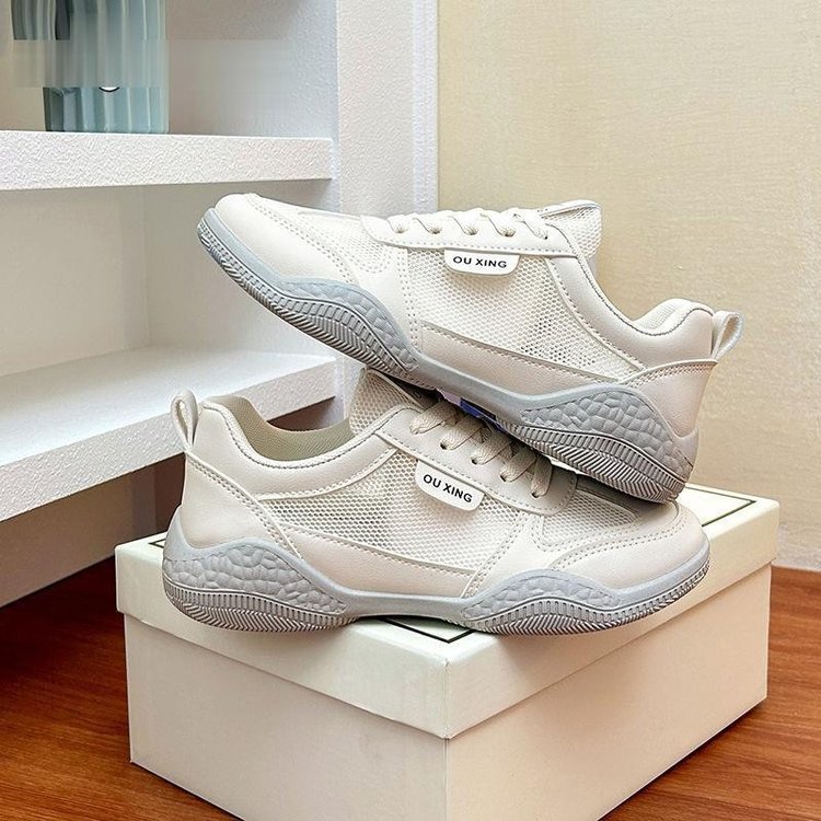 여성을위한 흰색 신발 2025 여름 새로운 스타일 한국어 버전 통기성 메쉬 부드러운 단독 캐주얼 스포츠 신발 여성을위한 다목적 운동화