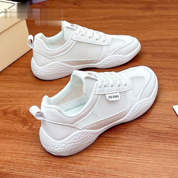 여성을위한 흰색 신발 2025 여름 새로운 스타일 한국어 버전 통기성 메쉬 부드러운 단독 캐주얼 스포츠 신발 여성을위한 다목적 운동화스토어 가기